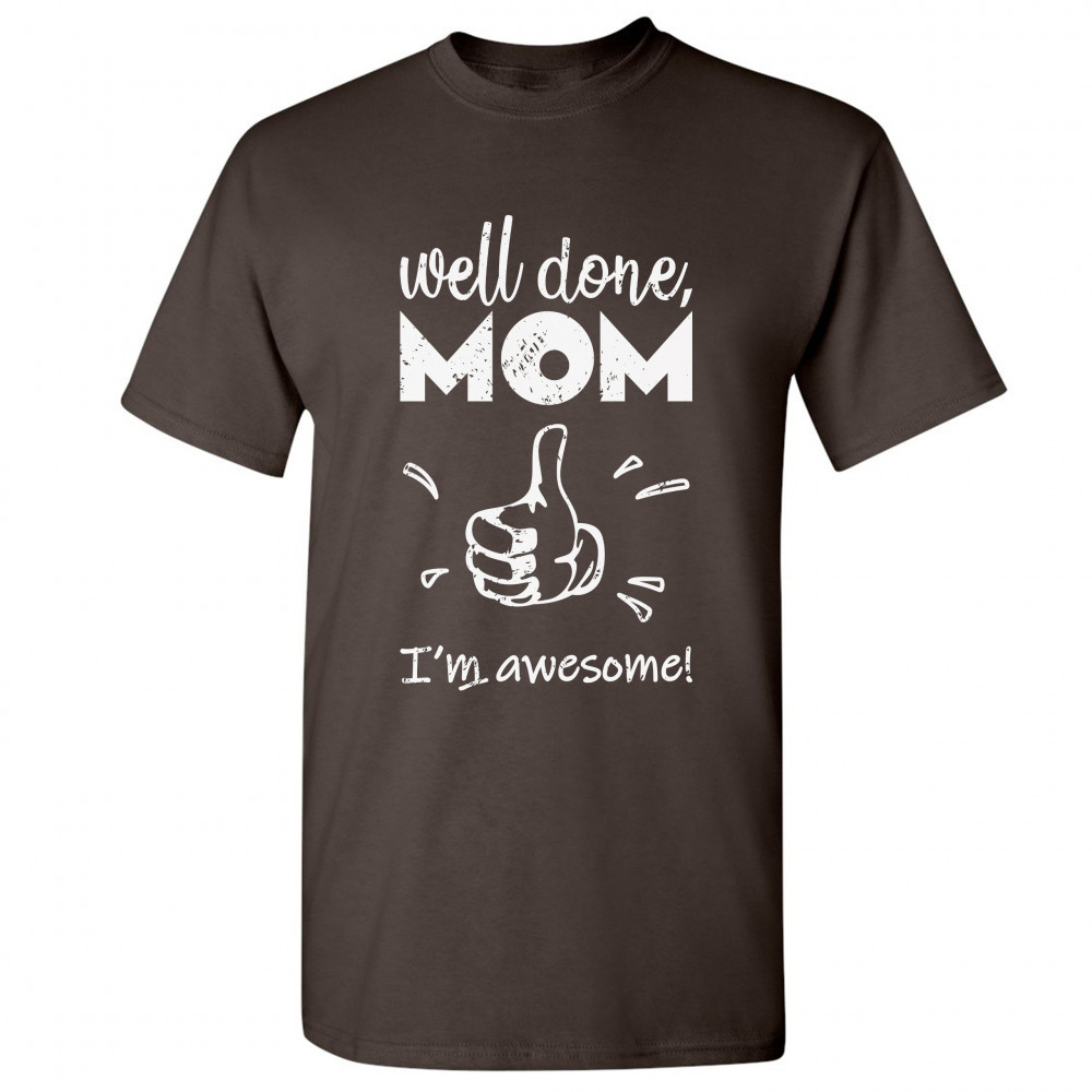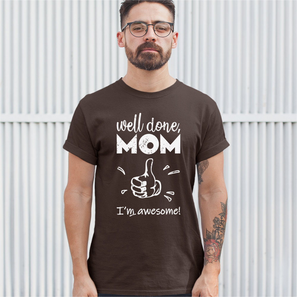 WELL DONE MOM I'M AWESOME t-shirt mother's day i love you mom mommy men's tee brown