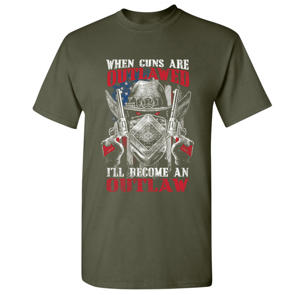 WHEN GUNS ARE OUTLAWED I'LL BECOME AN OUTLAW t-shirt 2nd amendment men's tee military green