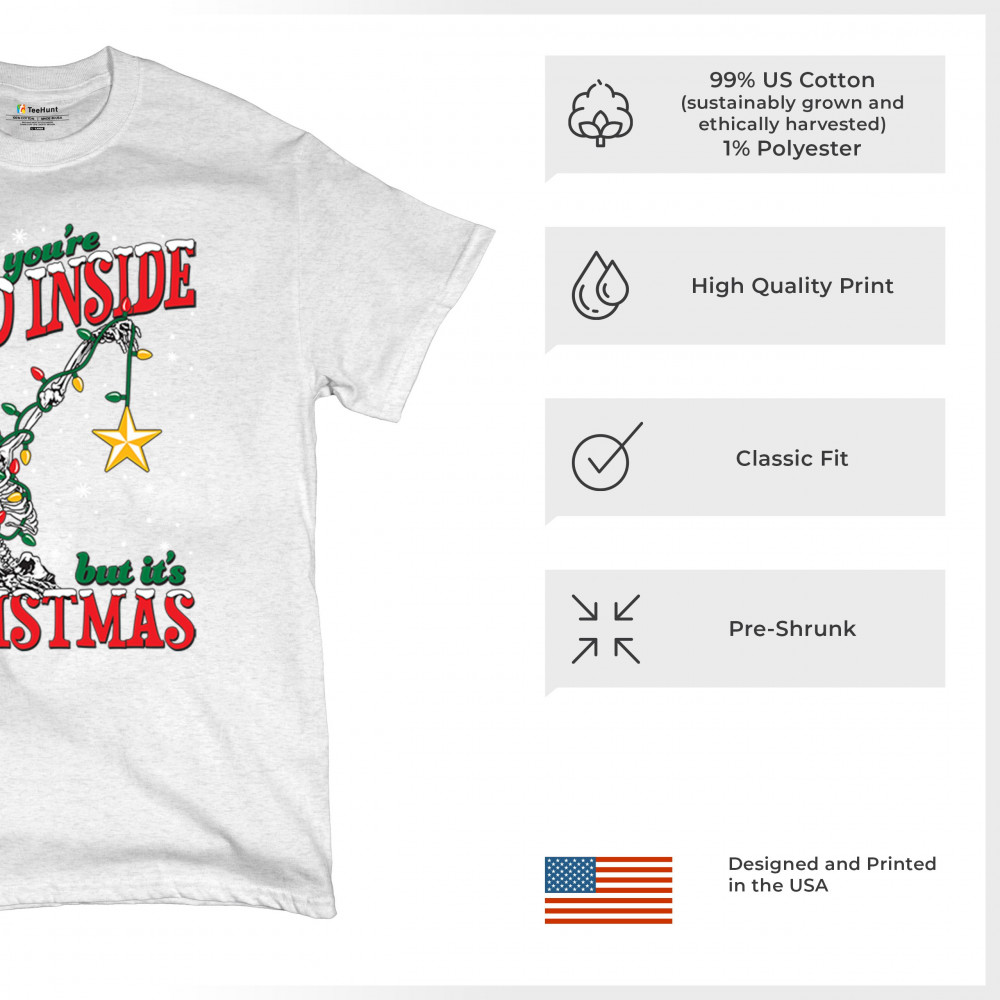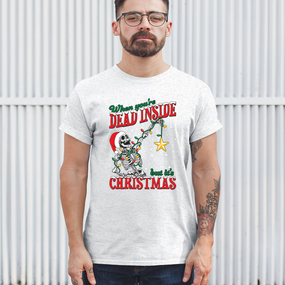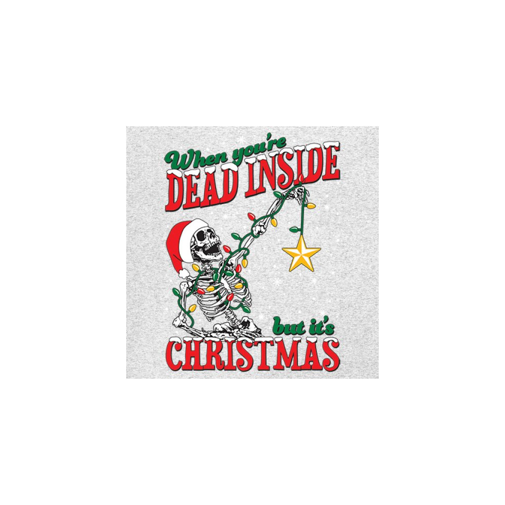 Celebrate humor and holiday spirit with the "When You're Dead Inside But It's Christmas" skeleton design. Perfect for parties and unique gifts.