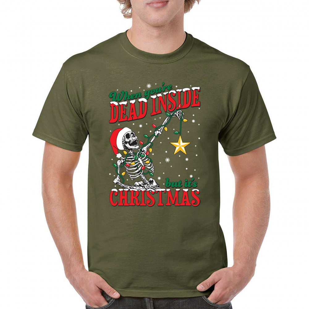 Celebrate humor and holiday spirit with the "When You're Dead Inside But It's Christmas" skeleton design. Perfect for parties and unique gifts.