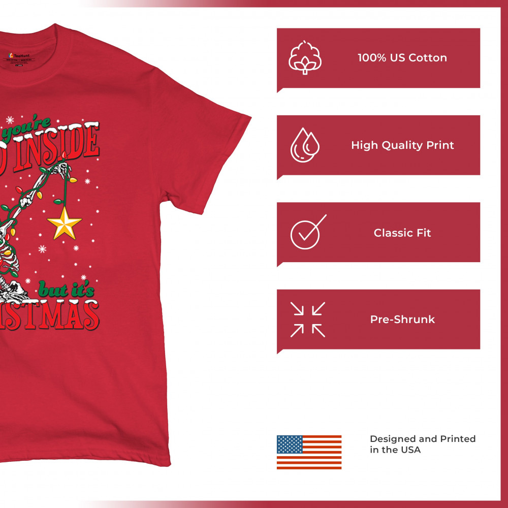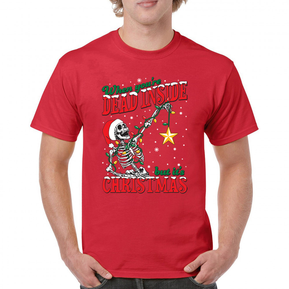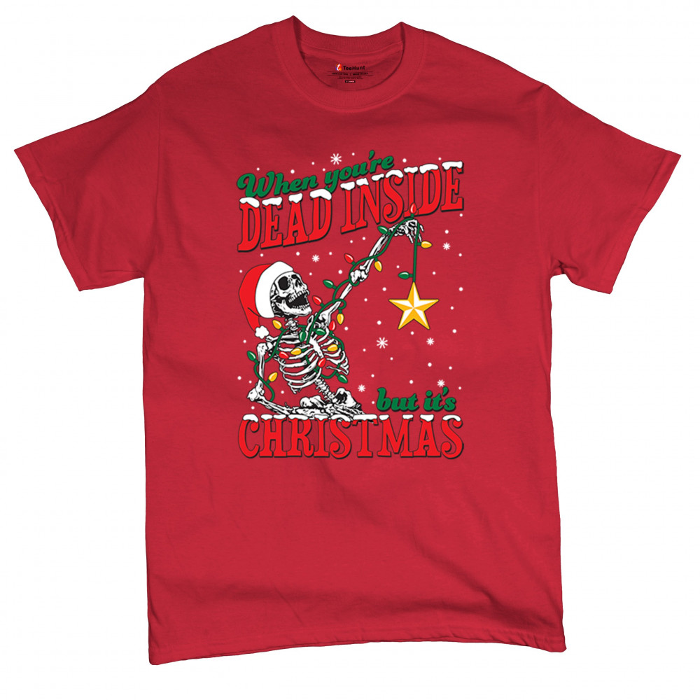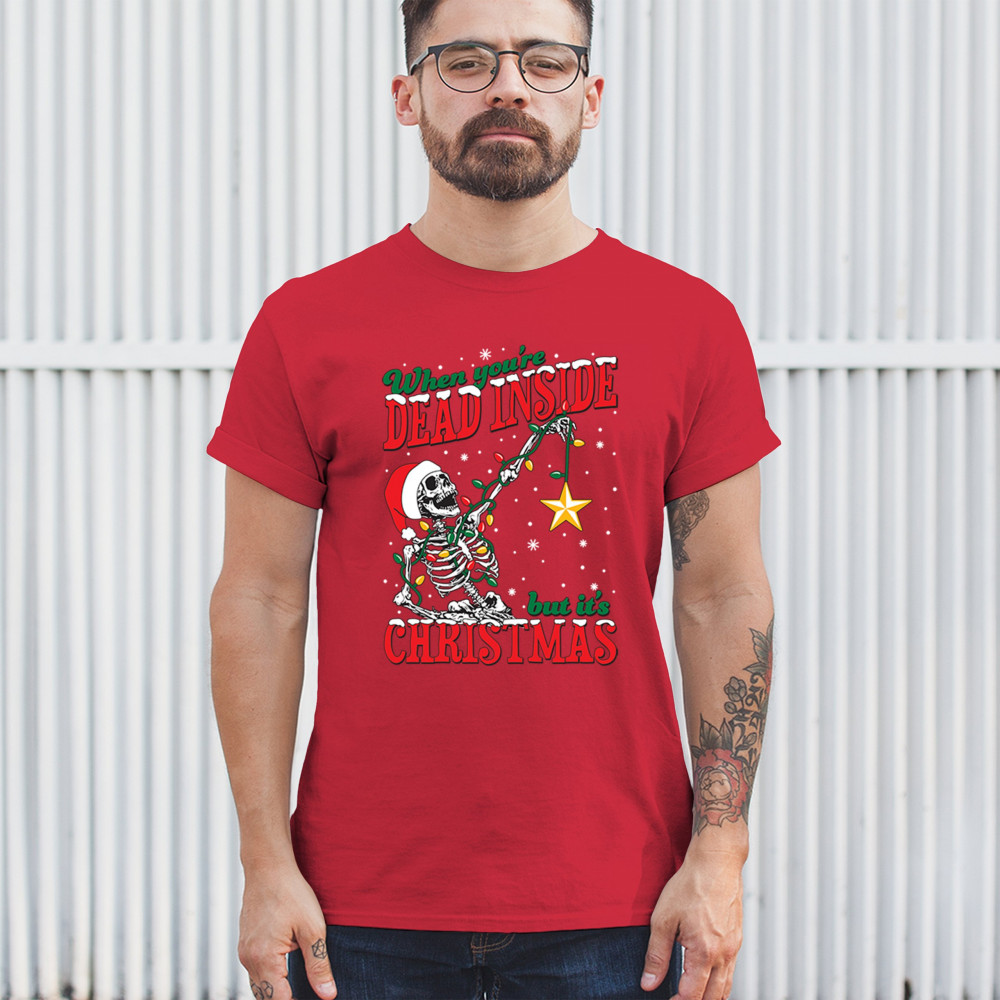 Celebrate humor and holiday spirit with the "When You're Dead Inside But It's Christmas" skeleton design. Perfect for parties and unique gifts.