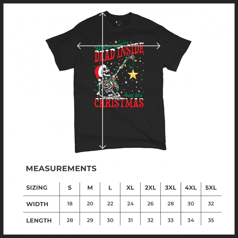 Bring humor and uniqueness to your holiday wardrobe with the "When You're Dead Inside But It's Christmas" design. This quirky creation features a skeleton embracing the festive spirit with colorful lights, a Santa hat, and a glowing star. Ideal for Secret Santa exchanges, ugly sweater parties, or anyone who loves blending a touch of humor with Christmas tradition. Celebrate the season in style with this unforgettable design.