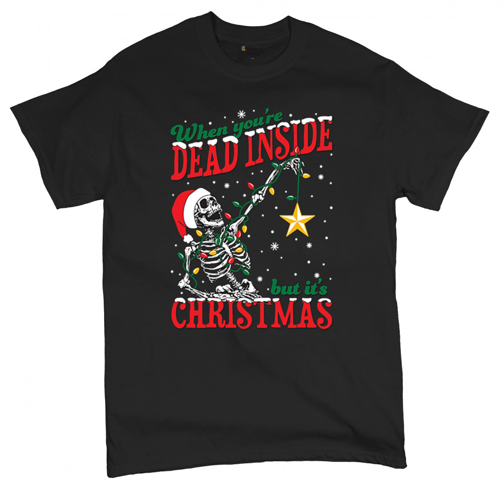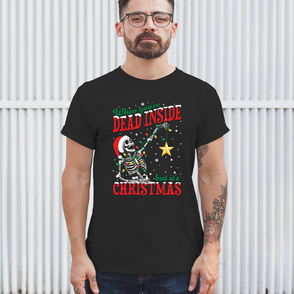 WHEN YOU'RE DEAD INSIDE BUT IT'S CHRISTMAS t-shirt skeleton santa men's tee black