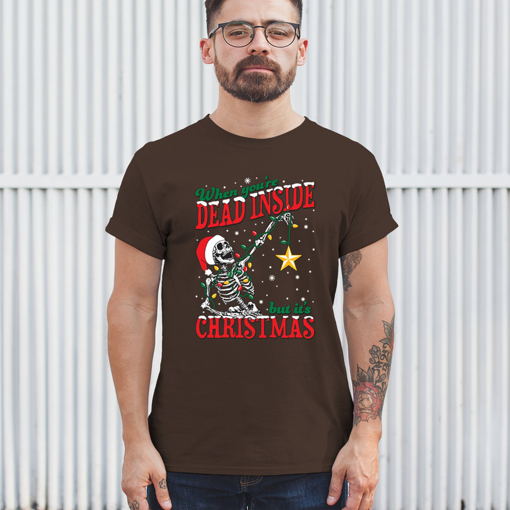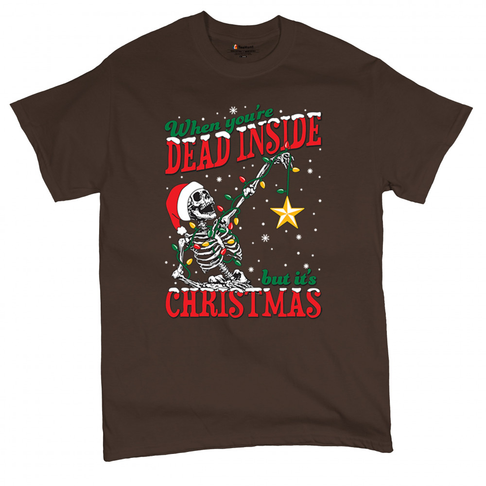 Celebrate humor and holiday spirit with the "When You're Dead Inside But It's Christmas" skeleton design. Perfect for parties and unique gifts.