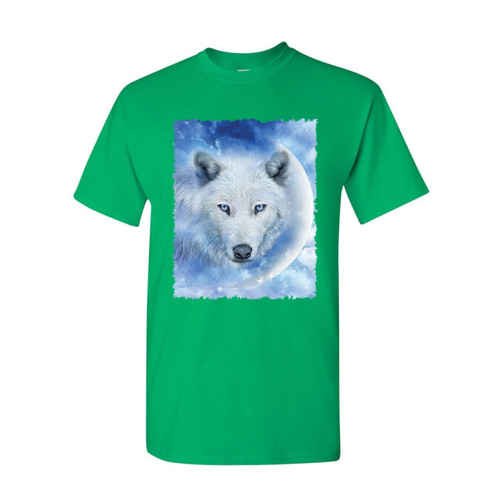 WHITE WOLF t-shirt wildlife animal moon howl nature wolfpack mens tee shirt green