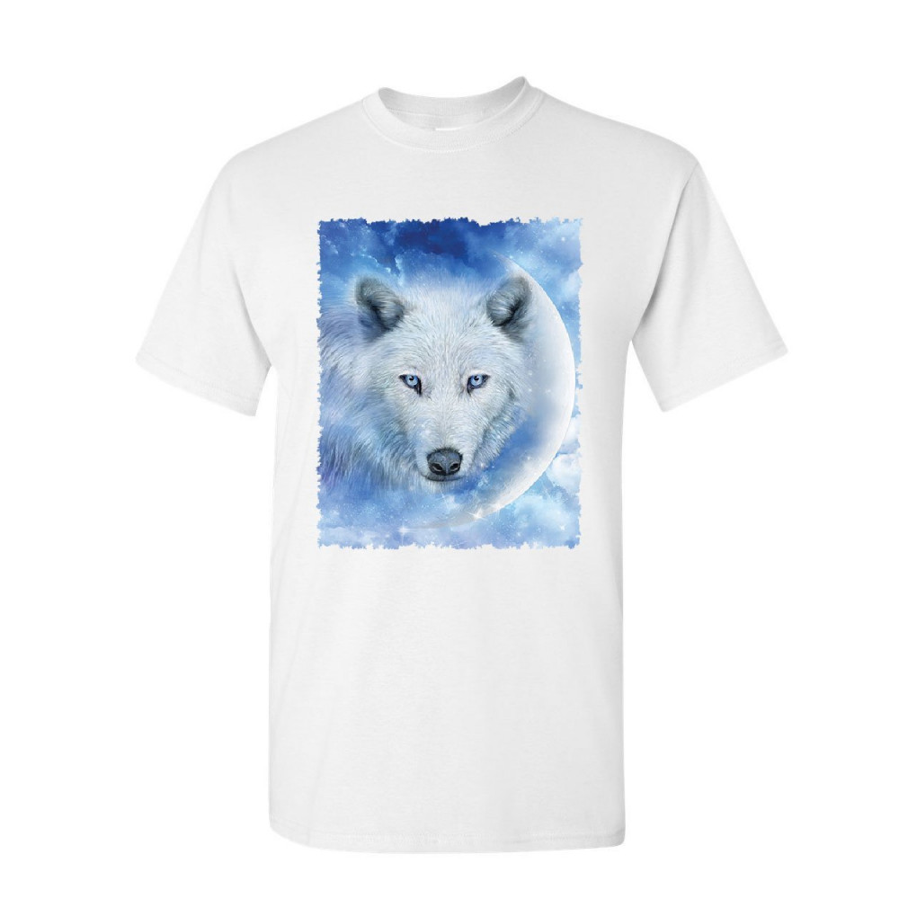 WHITE WOLF t-shirt wildlife animal moon howl nature wolfpack mens tee shirt white