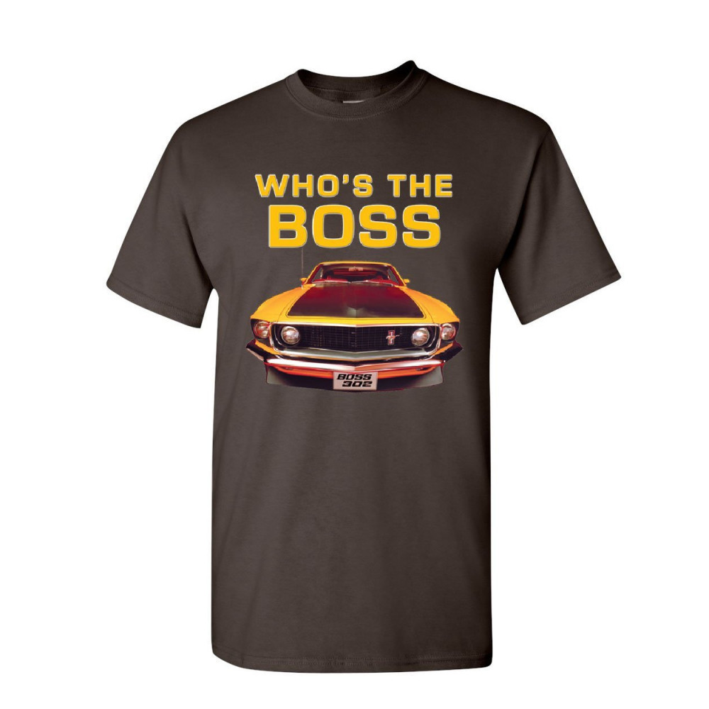 WHO'S THE BOSS? t-shirt ford mustang boss 302 classic muscle car mens tee shirt brown
