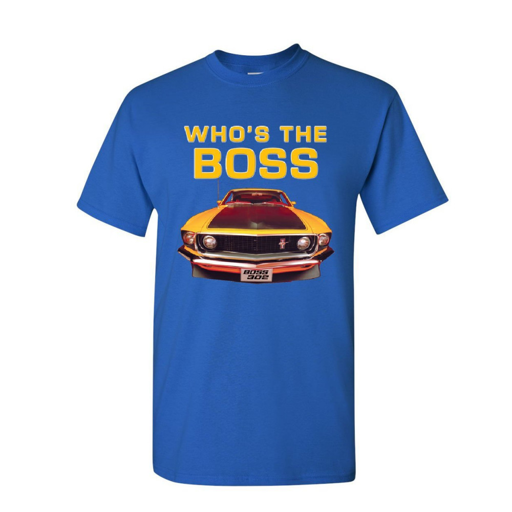 WHO'S THE BOSS? t-shirt ford mustang boss 302 classic muscle car mens tee shirt royal blue