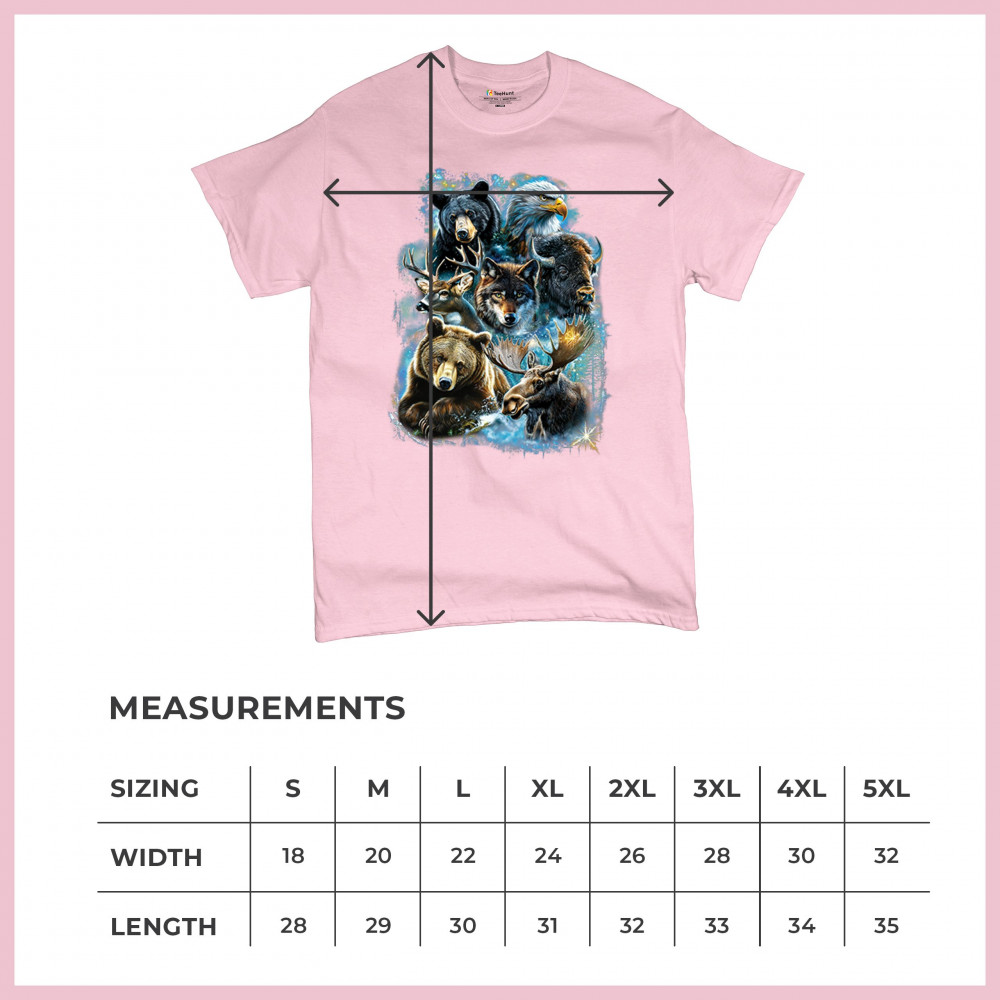 Celebrate the untamed beauty of the wilderness with this powerful design showcasing North America’s most iconic animals—moose, wolf, grizzly, black bear, bison, eagle, and deer. Packed with forest energy and rich detail, this piece honors rugged mountain life, animal strength, and a deep respect for wild nature.
