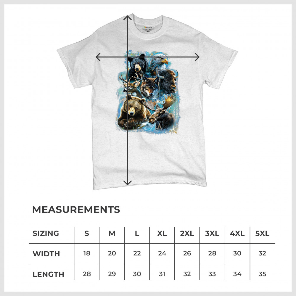 Celebrate the untamed beauty of the wilderness with this powerful design showcasing North America’s most iconic animals—moose, wolf, grizzly, black bear, bison, eagle, and deer. Packed with forest energy and rich detail, this piece honors rugged mountain life, animal strength, and a deep respect for wild nature.