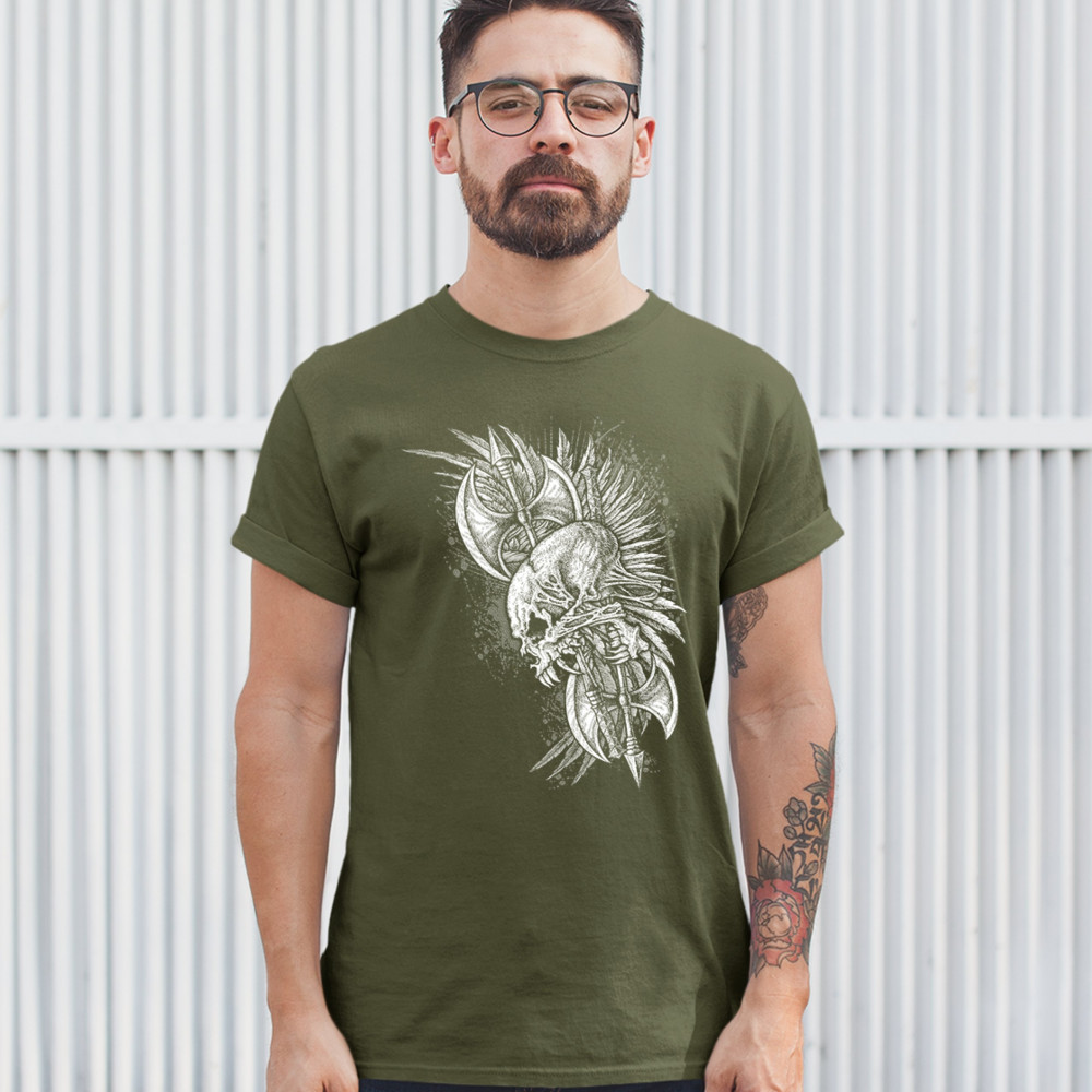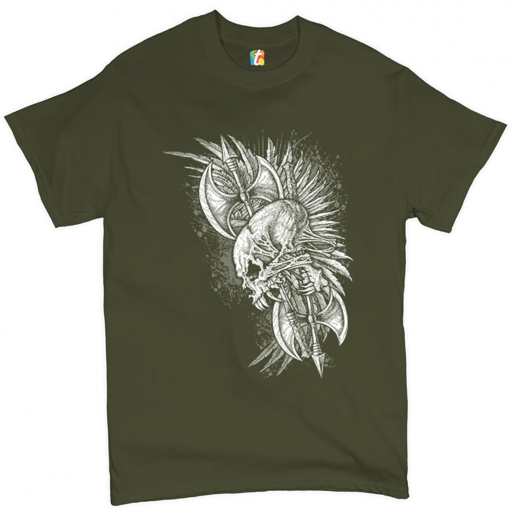 WINGED SKULL t-shirt viking warrior skeleton labrys axe gothic men's tee military green