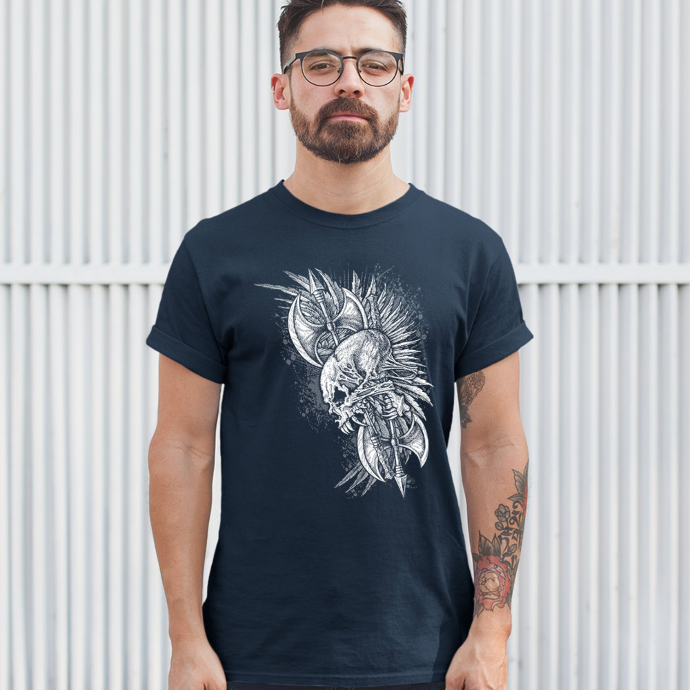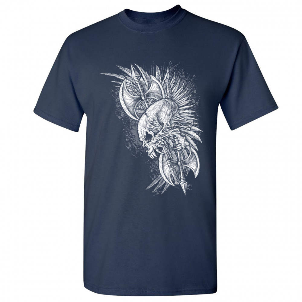 WINGED SKULL t-shirt viking warrior skeleton labrys axe gothic men's tee navy blue