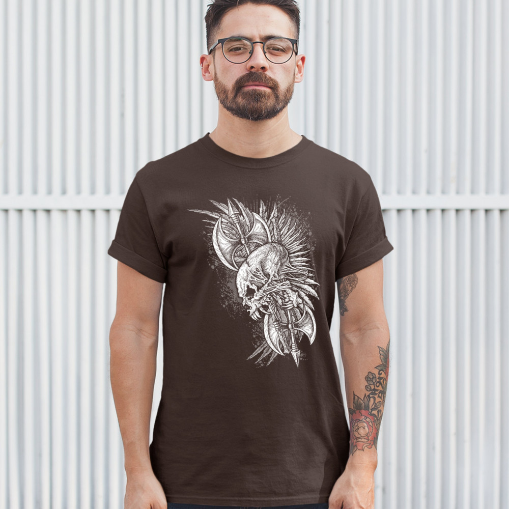 WINGED SKULL t-shirt viking warrior skeleton labrys axe gothic men's tee brown