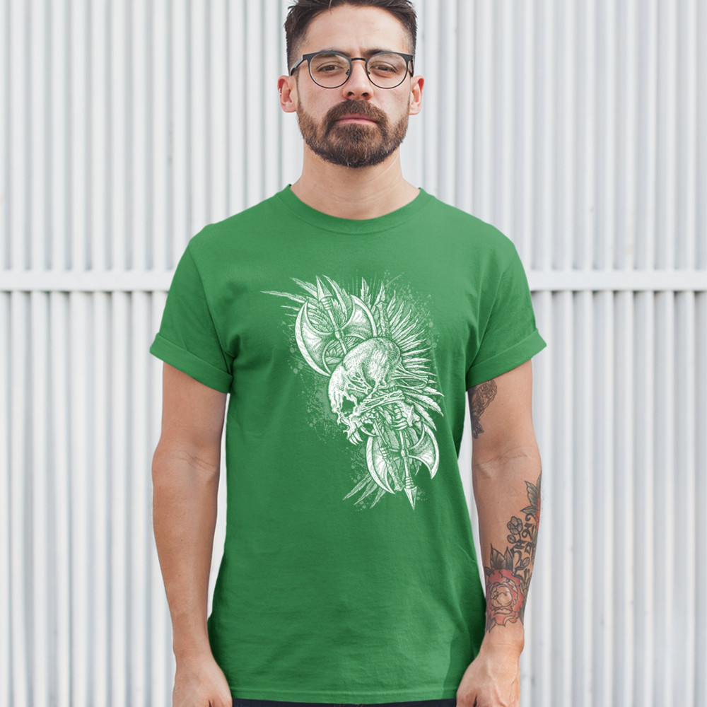 WINGED SKULL t-shirt viking warrior skeleton labrys axe gothic men's tee green
