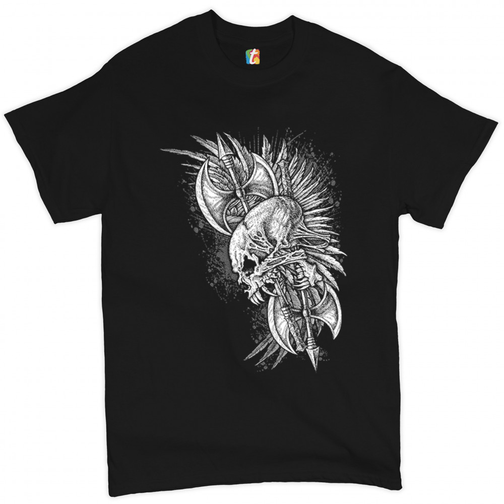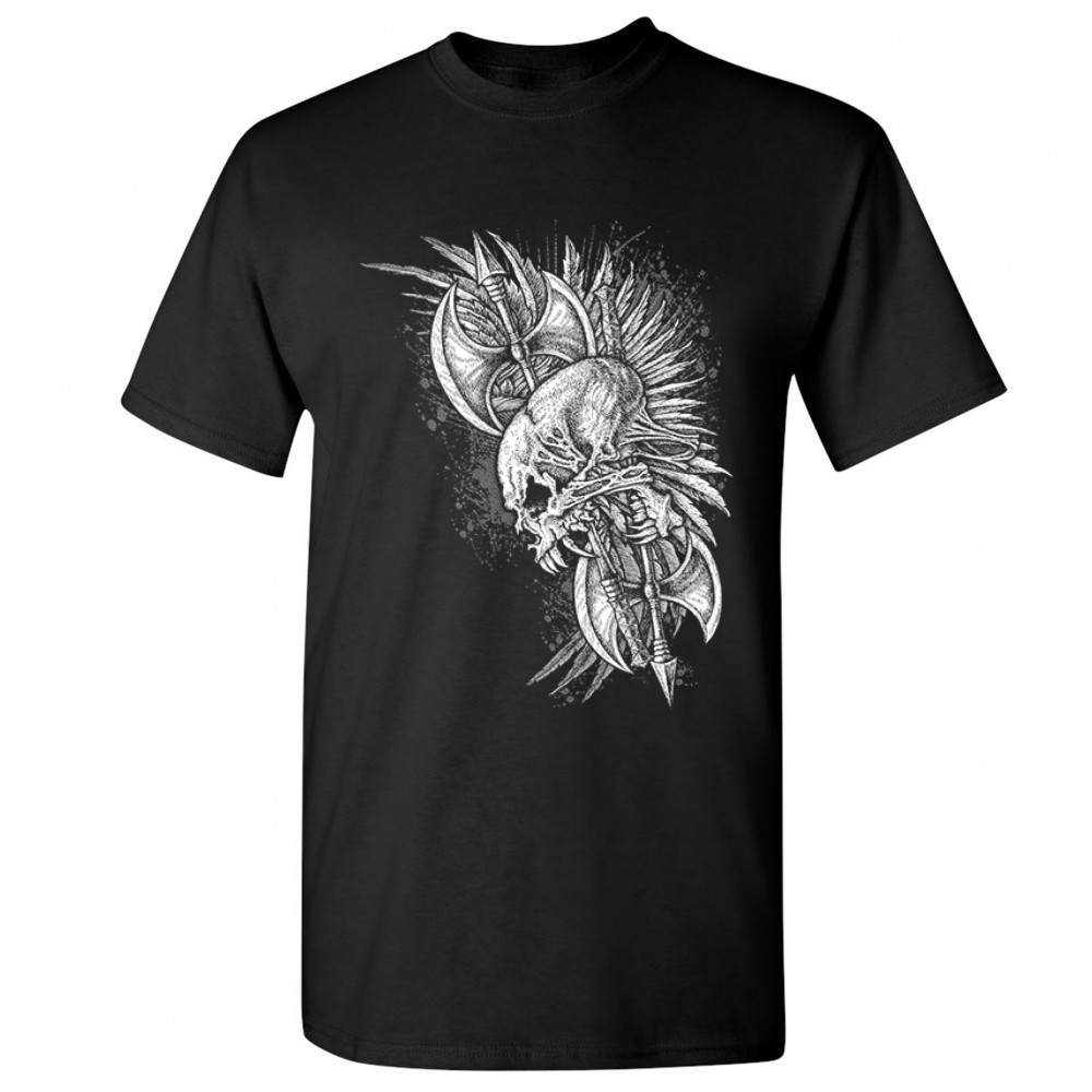 WINGED SKULL t-shirt viking warrior skeleton labrys axe gothic men's tee black