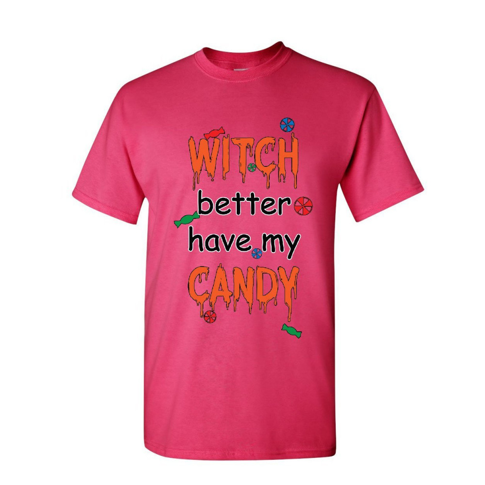 WITCH BETTER HAVE MY CANDY t-shirt halloween trick or treating mens tee shirt hot pink