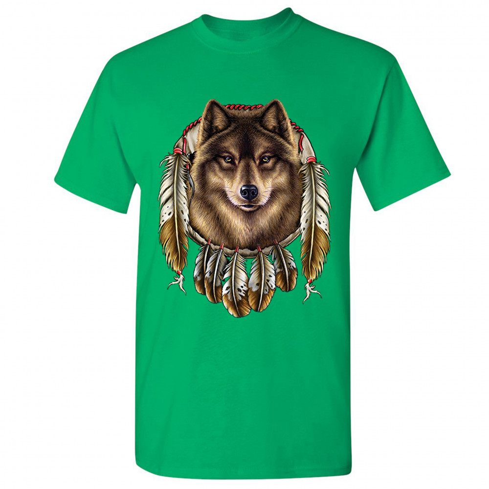 WOLF SPIRIT t-shirt native american dreamcatcher indigenous men's tee green