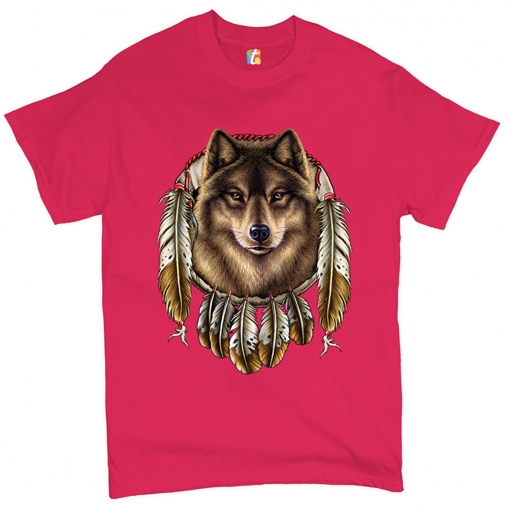 WOLF SPIRIT t-shirt native american dreamcatcher indigenous men's tee hot pink