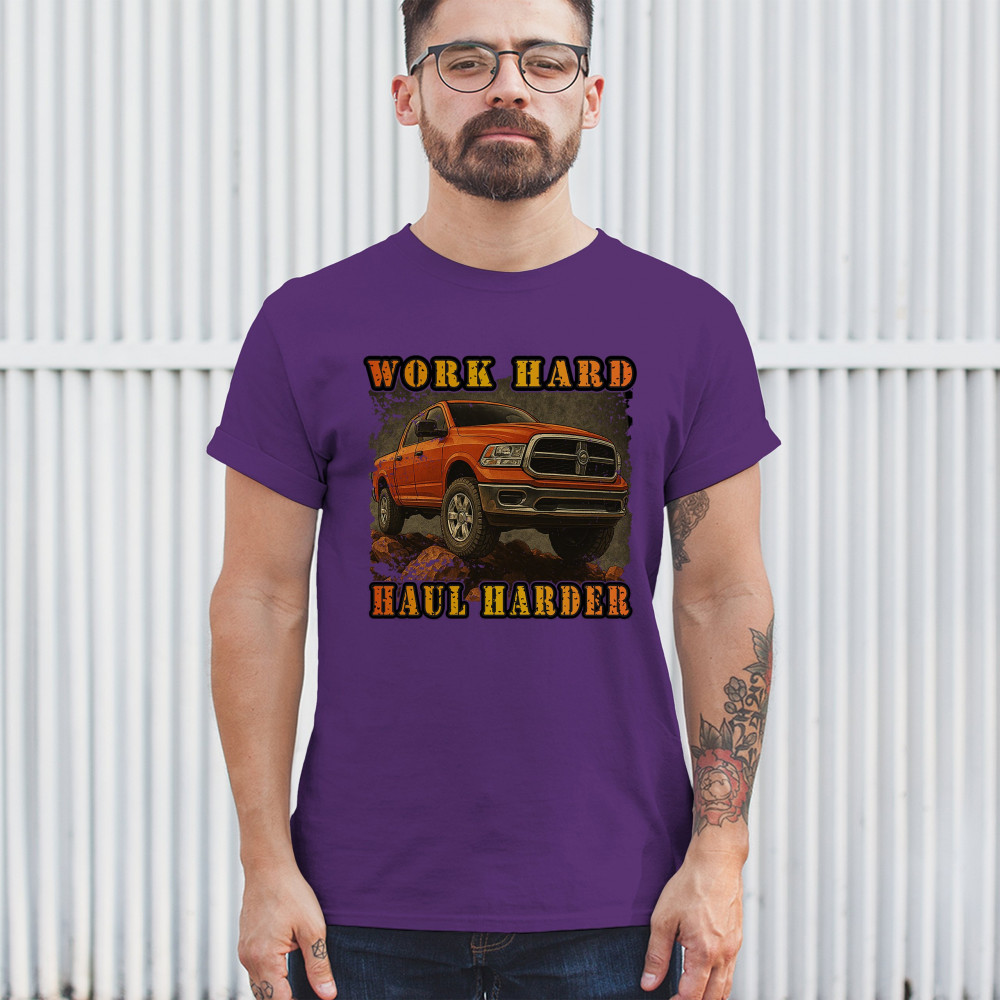Built for those who know what it means to grind, this bold orange pickup design honors strength, power, and grit. Featuring the “Work Hard Haul Harder†motto, it’s made for job site heroes, off-road warriors, and 4x4 enthusiasts who drive machines that never quit. Show your pride in performance and purpose.