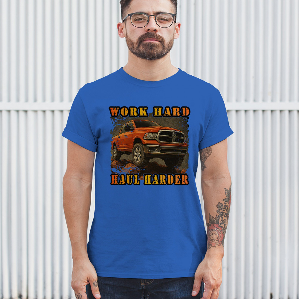 Built for those who know what it means to grind, this bold orange pickup design honors strength, power, and grit. Featuring the “Work Hard Haul Harder†motto, it’s made for job site heroes, off-road warriors, and 4x4 enthusiasts who drive machines that never quit. Show your pride in performance and purpose.
