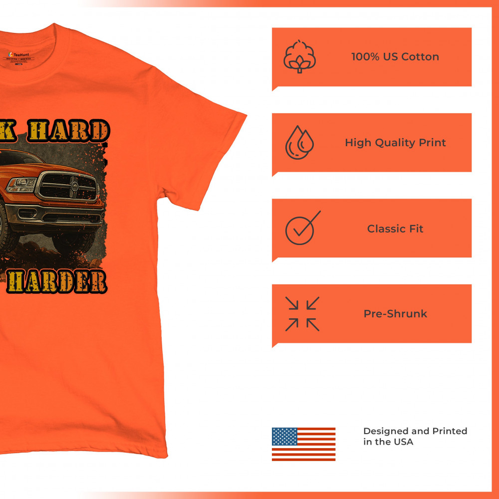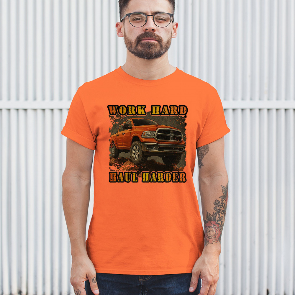 Built for those who know what it means to grind, this bold orange pickup design honors strength, power, and grit. Featuring the “Work Hard Haul Harder†motto, it’s made for job site heroes, off-road warriors, and 4x4 enthusiasts who drive machines that never quit. Show your pride in performance and purpose.