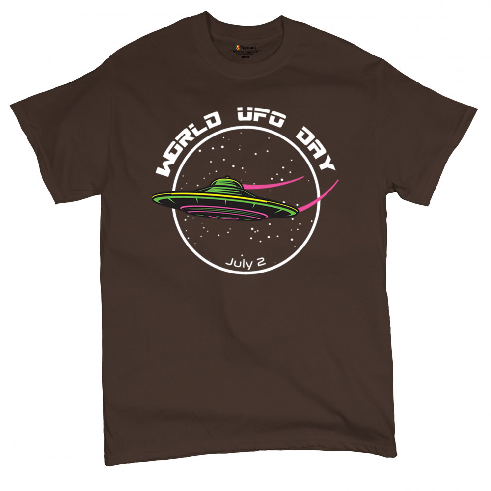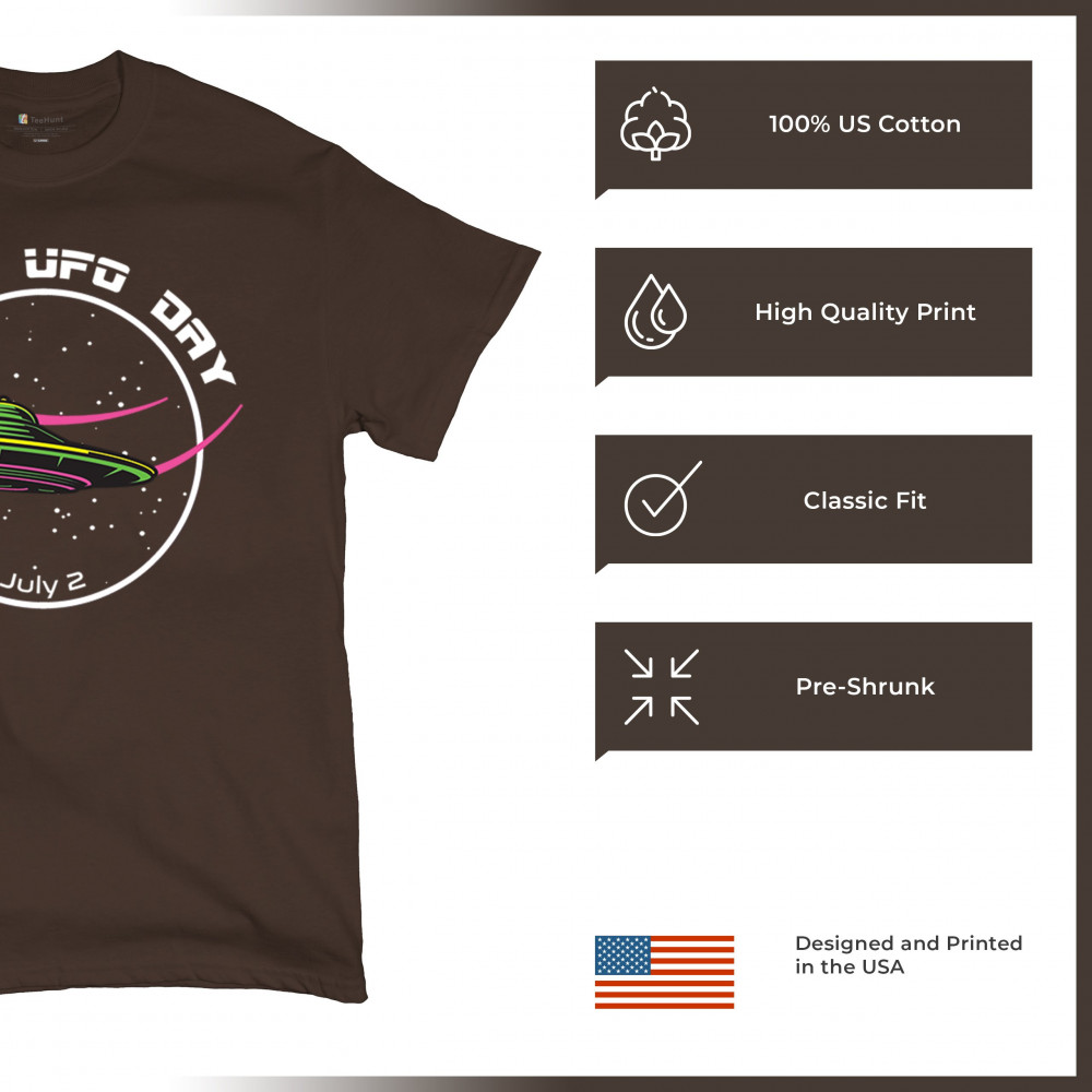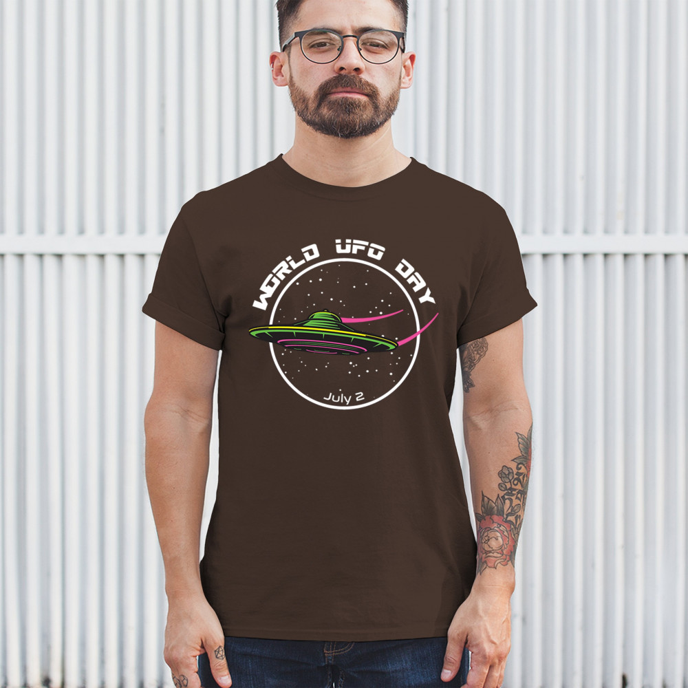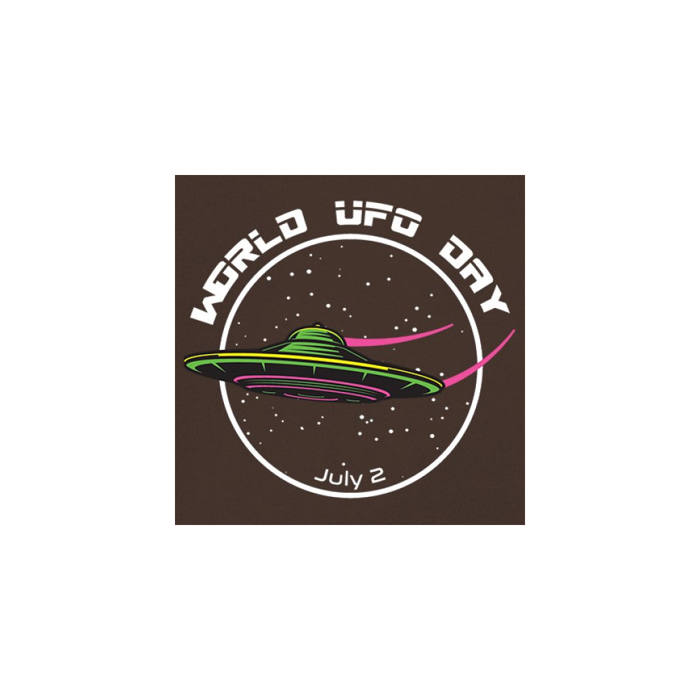 Celebrate World UFO Day on July 2nd with a captivating design featuring a sleek UFO against a starry sky. Perfect for space enthusiasts and UFO lovers.