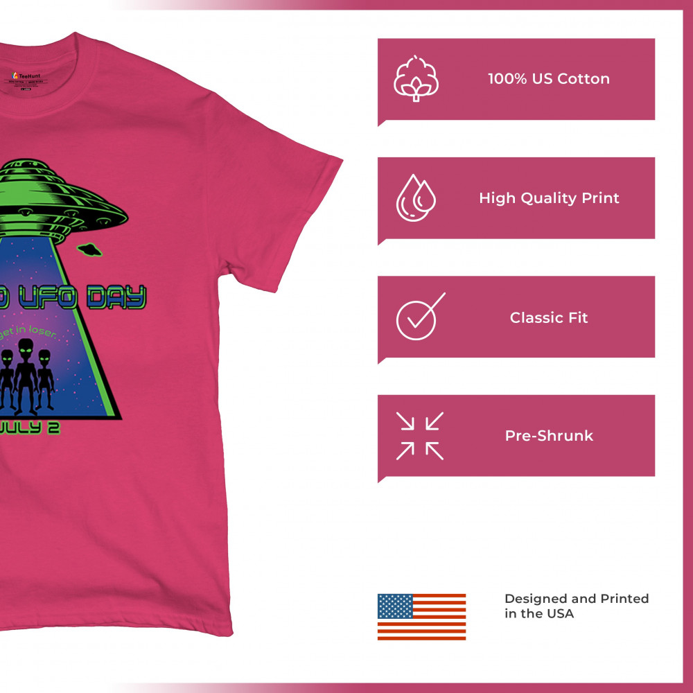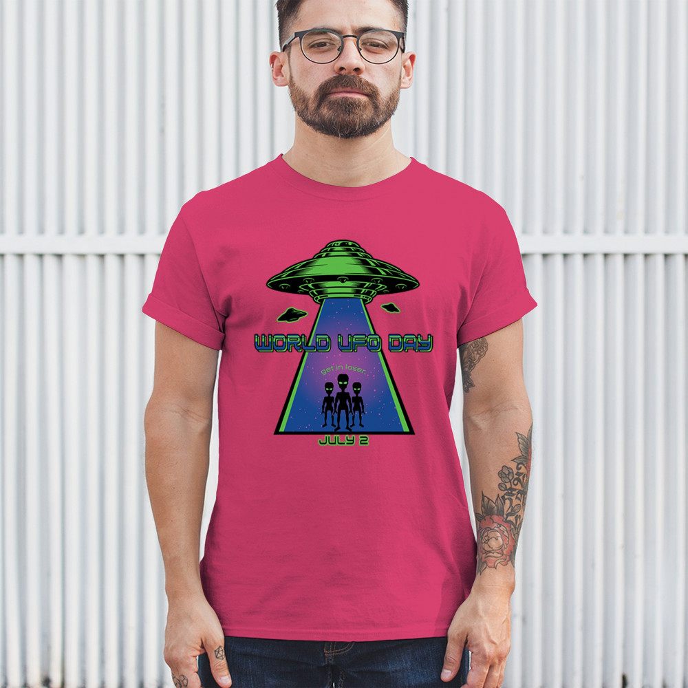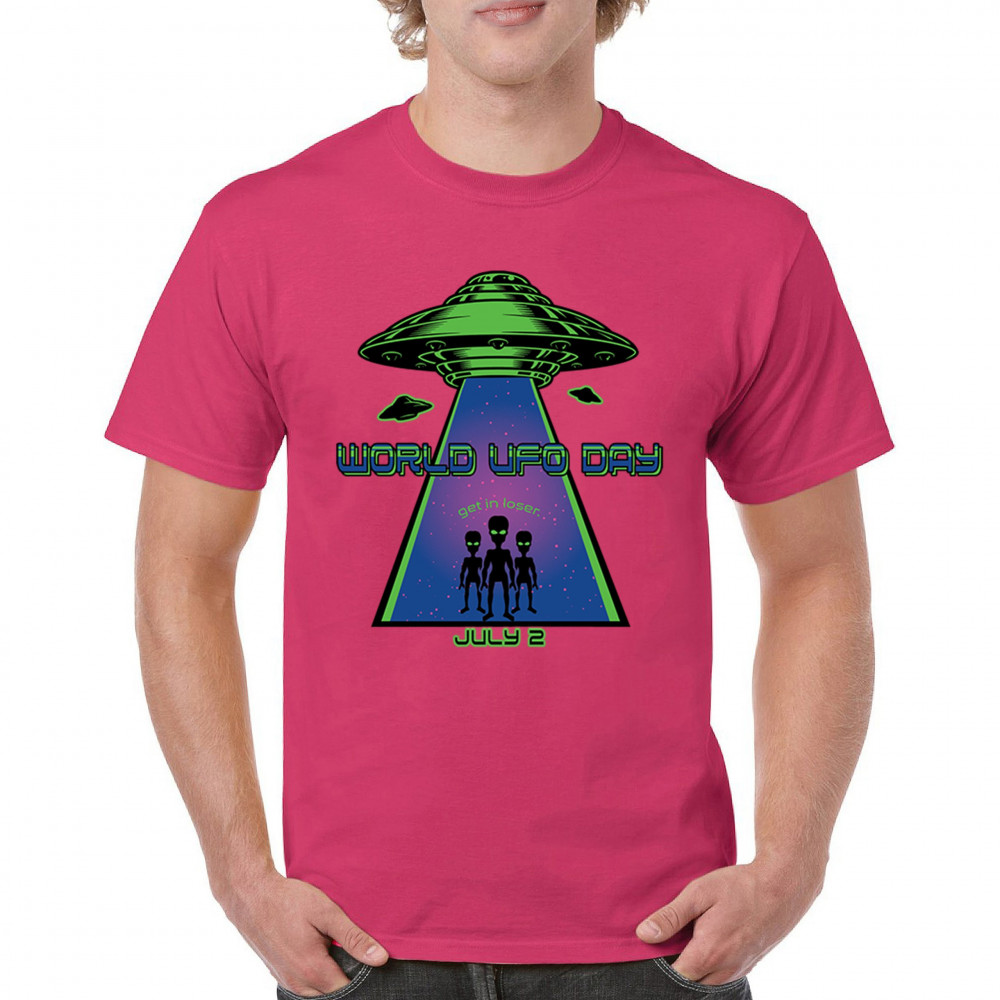 Join the celebration of World UFO Day with this unique design, featuring a detailed UFO beaming up three cheerful aliens with the phrase "Get in, loser." Perfect for those who are fascinated by the unknown and have a sense of humor about extraterrestrial life. Whether you're attending a UFO event, meeting with fellow enthusiasts, or just want to express your quirky style, this design is a must-have. Embrace the spirit of curiosity and fun with this eye-catching design for July 2nd.