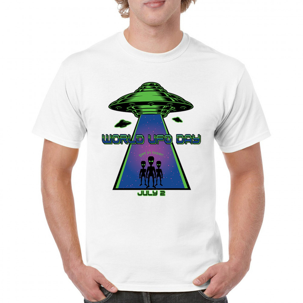 Join the celebration of World UFO Day with this unique design, featuring a detailed UFO beaming up three cheerful aliens with the phrase "Get in, loser." Perfect for those who are fascinated by the unknown and have a sense of humor about extraterrestrial life. Whether you're attending a UFO event, meeting with fellow enthusiasts, or just want to express your quirky style, this design is a must-have. Embrace the spirit of curiosity and fun with this eye-catching design for July 2nd.