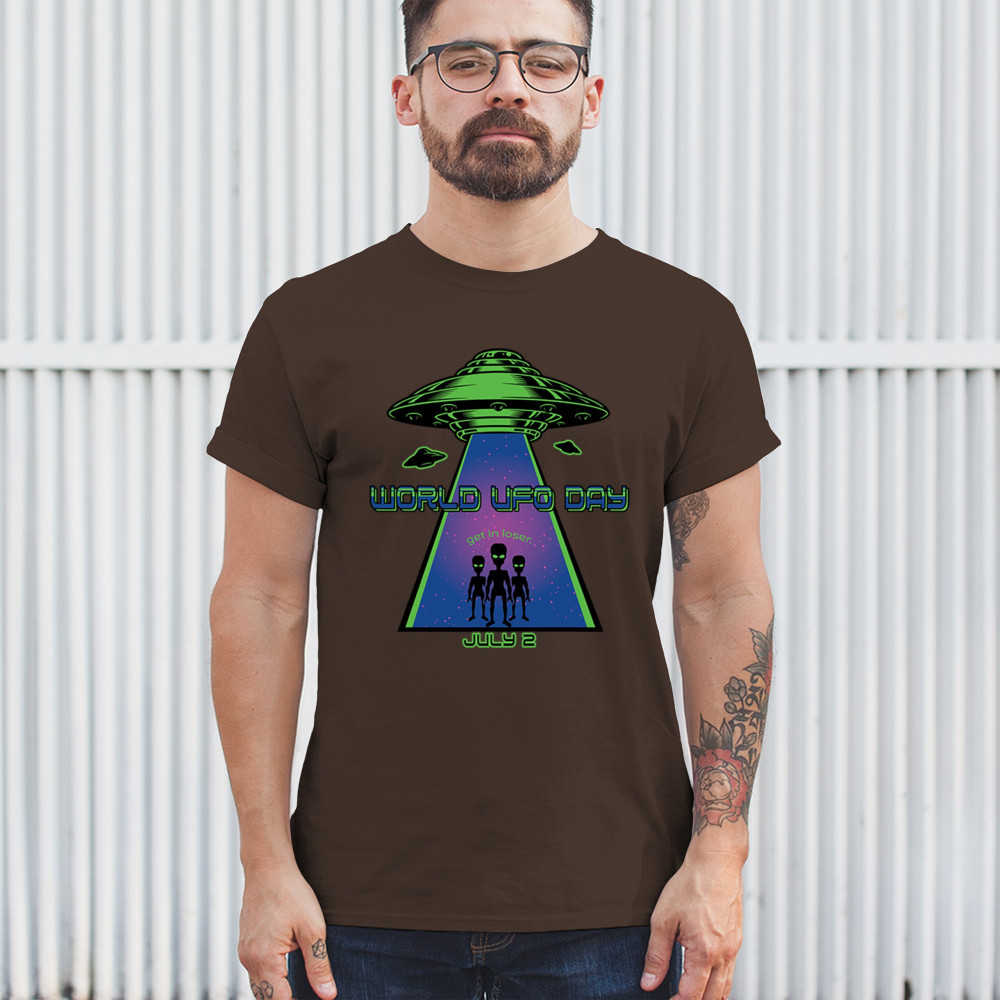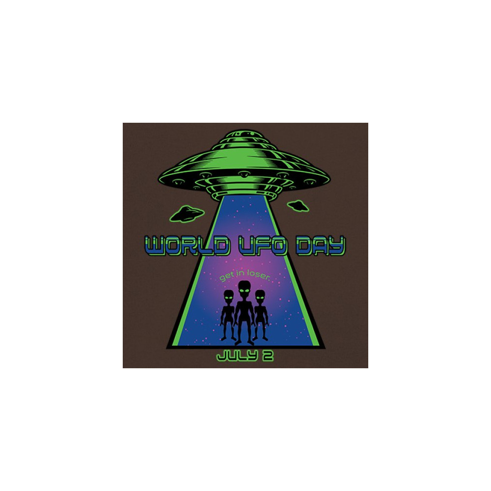 Join the celebration of World UFO Day with this unique design, featuring a detailed UFO beaming up three cheerful aliens with the phrase "Get in, loser." Perfect for those who are fascinated by the unknown and have a sense of humor about extraterrestrial life. Whether you're attending a UFO event, meeting with fellow enthusiasts, or just want to express your quirky style, this design is a must-have. Embrace the spirit of curiosity and fun with this eye-catching design for July 2nd.