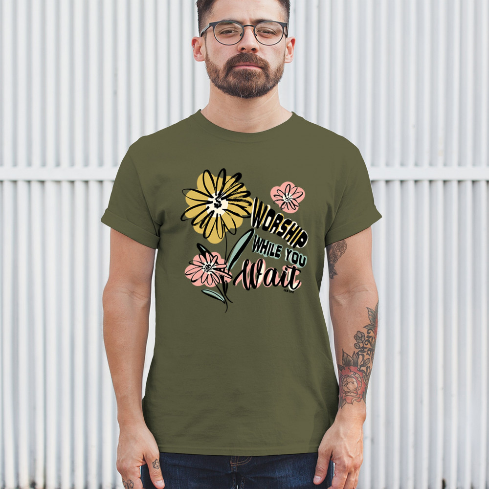 Find solace in our "Worship While You Wait" design, a harmonious blend of florals and faith for life’s quiet moments.