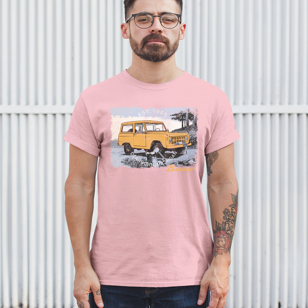 Celebrate the iconic Ford Bronco with this classic car apparel that embodies the retro Ford design. Featuring the Bronco Since 1966, this artwork is perfect for Ford Bronco enthusiasts, rugged SUV lovers, and off-road adventurers. Whether you're a Ford truck fan, a collector of classic car collectibles, or looking for the ultimate Bronco gift, this timeless design reflects the heart of vintage off-road vehicles and the outdoor explorer lifestyle.