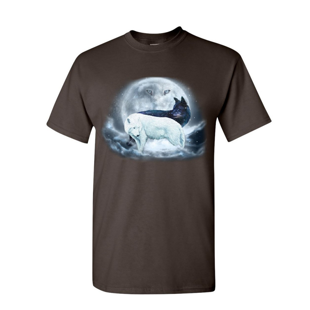 YIN & YANG WOLVES t-shirt animals wildlife nature wolf pack moon mens tee shirt brown