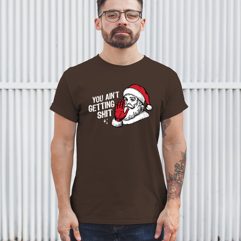 Funny Santa Christmas design with sarcastic Grumpy humor, Merry Xmas parody, Let It Snow style, Jingle Bells laughs, and Christmas tree vibes.