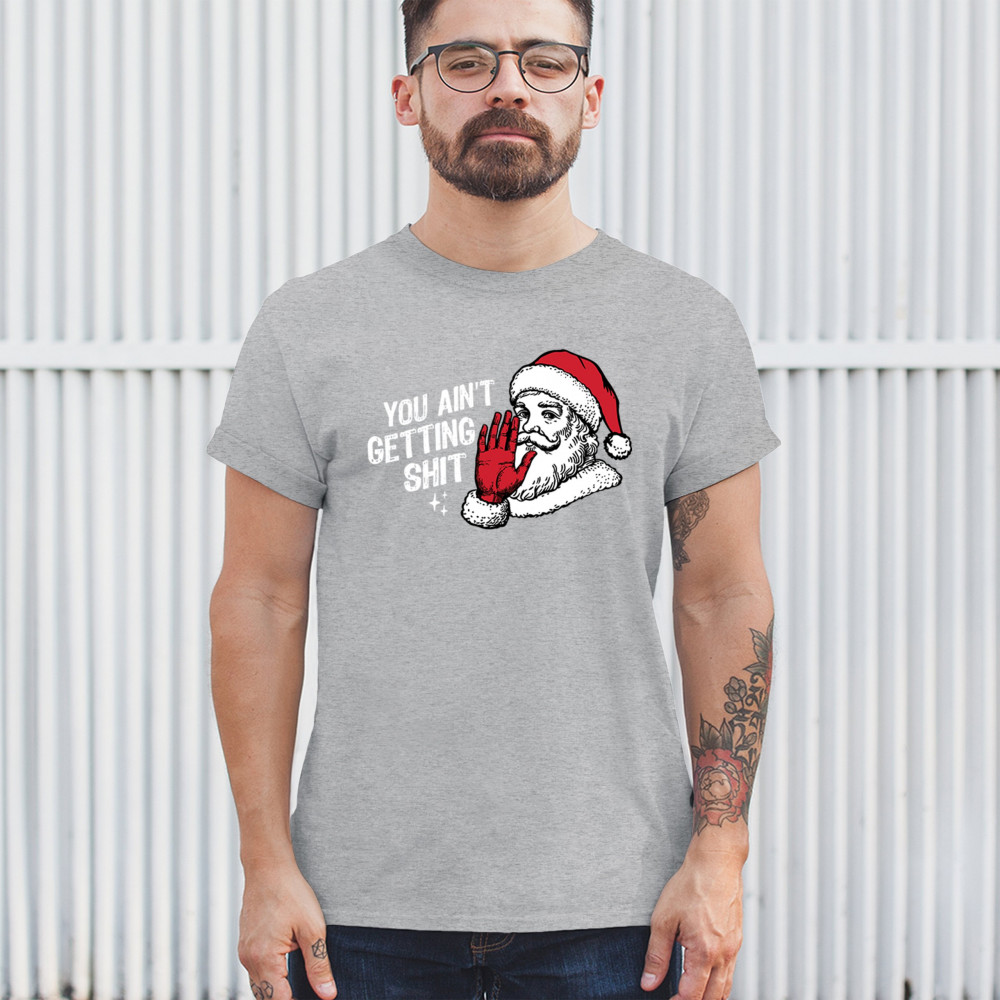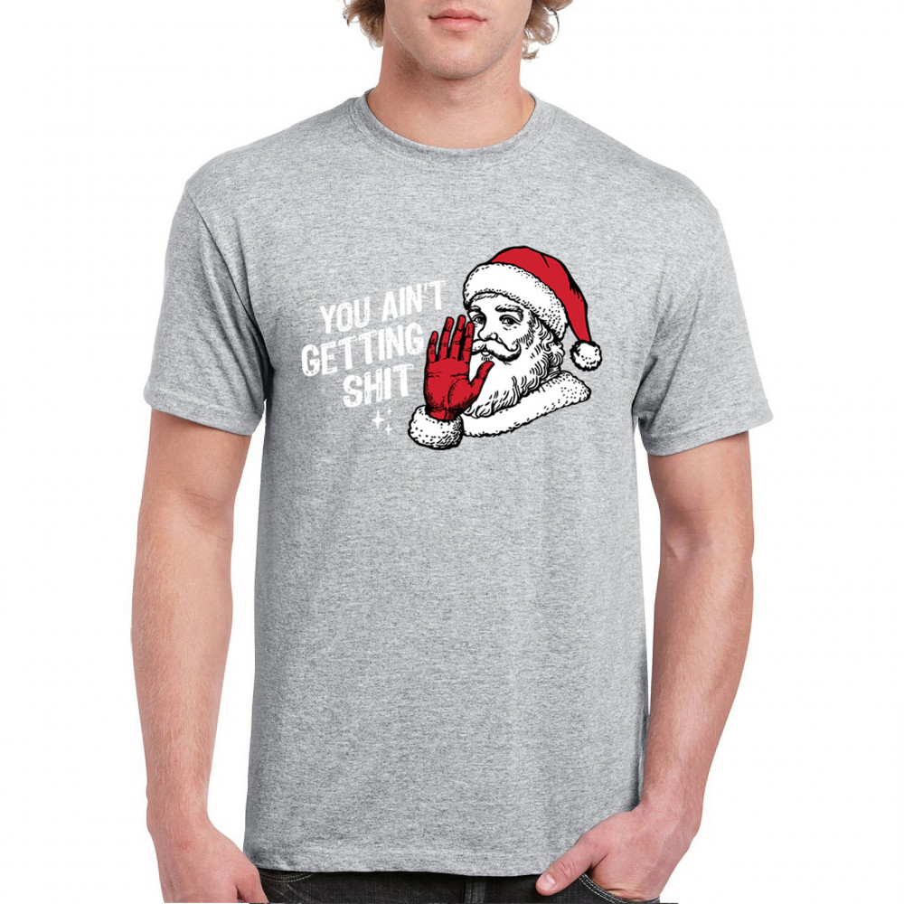 Funny Santa Christmas design with sarcastic Grumpy humor, Merry Xmas parody, Let It Snow style, Jingle Bells laughs, and Christmas tree vibes.