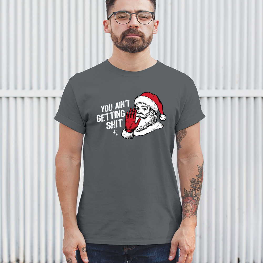 Funny Santa Christmas design with sarcastic Grumpy humor, Merry Xmas parody, Let It Snow style, Jingle Bells laughs, and Christmas tree vibes.