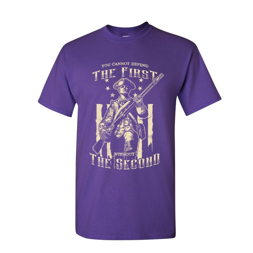 YOU CANNOT DEFEND THE FIRST WITHOUT THE SECOND you can't defend the first without the second t-shirt militia 2a mens tee shirt purple