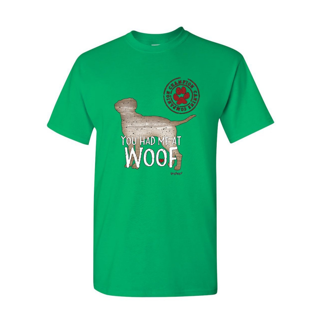 YOU HAD ME AT WOOF t-shirt pet friend dogs doggie puppy paw bark mens tee shirt green