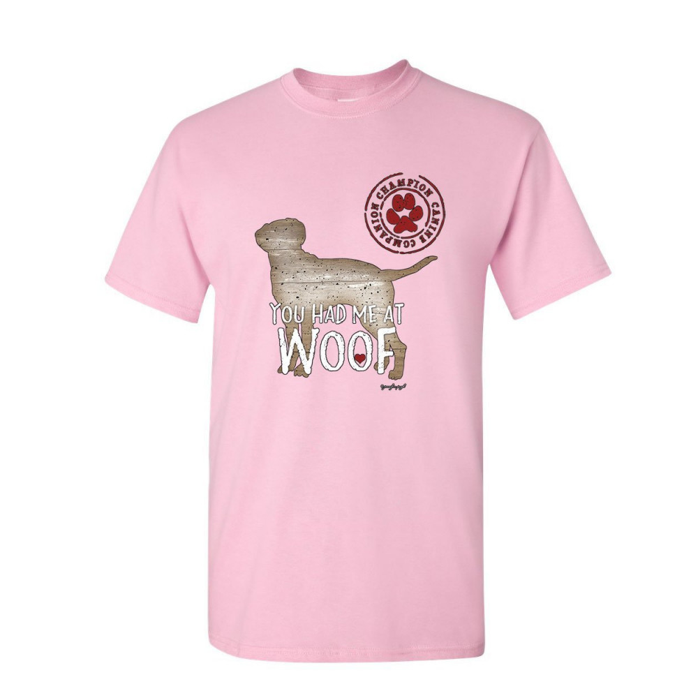YOU HAD ME AT WOOF t-shirt pet friend dogs doggie puppy paw bark mens tee shirt light pink