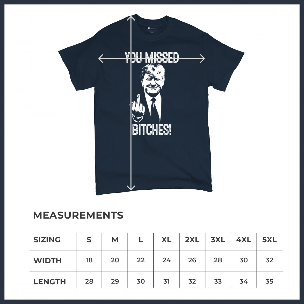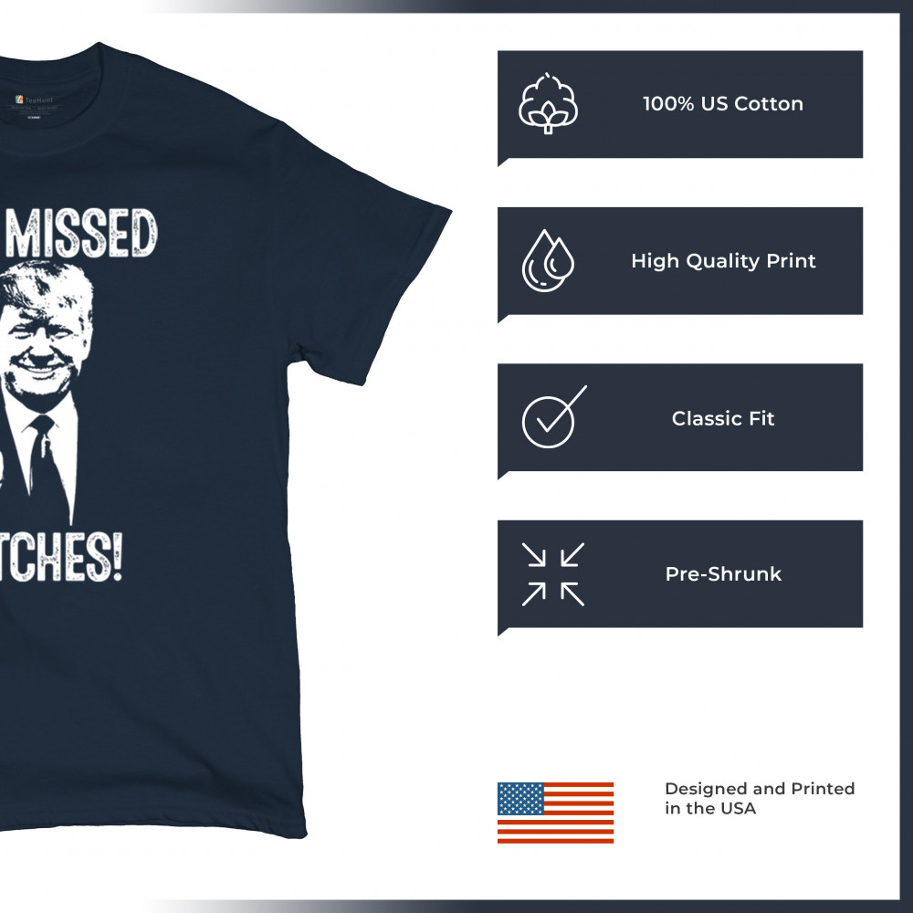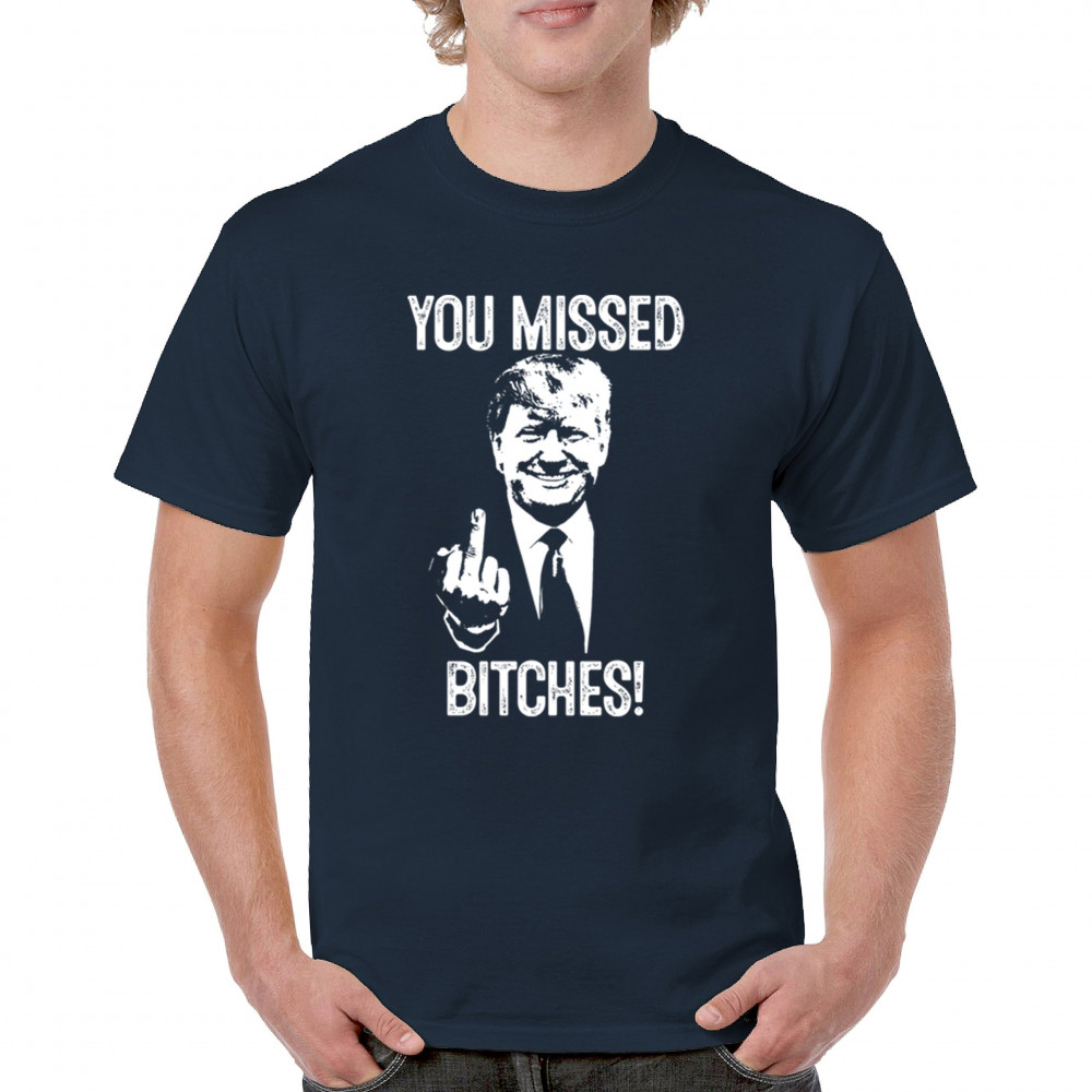 Commemorate Trump's resilience and determination with our bold "You Missed Bitches!" design. Show your support and patriotism.