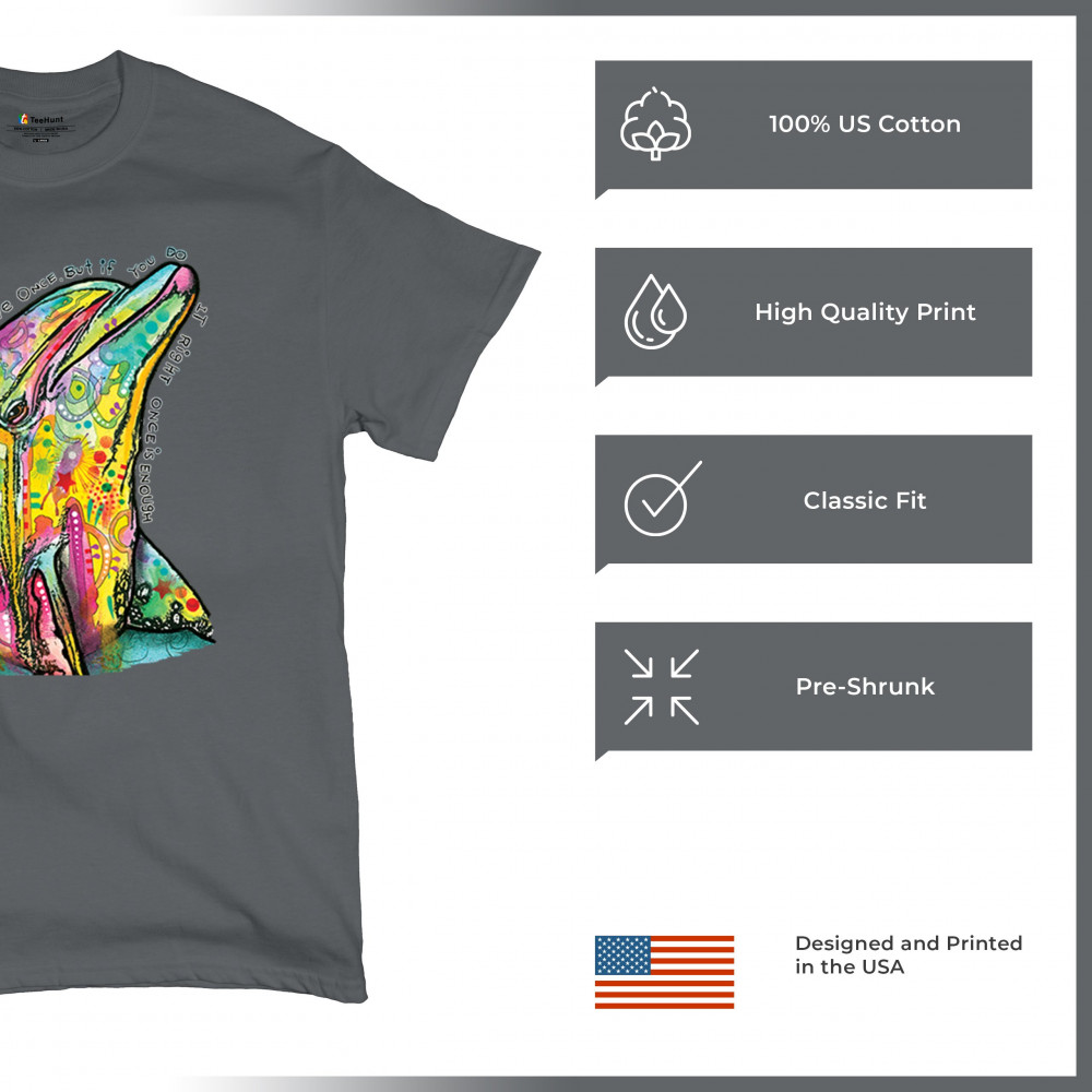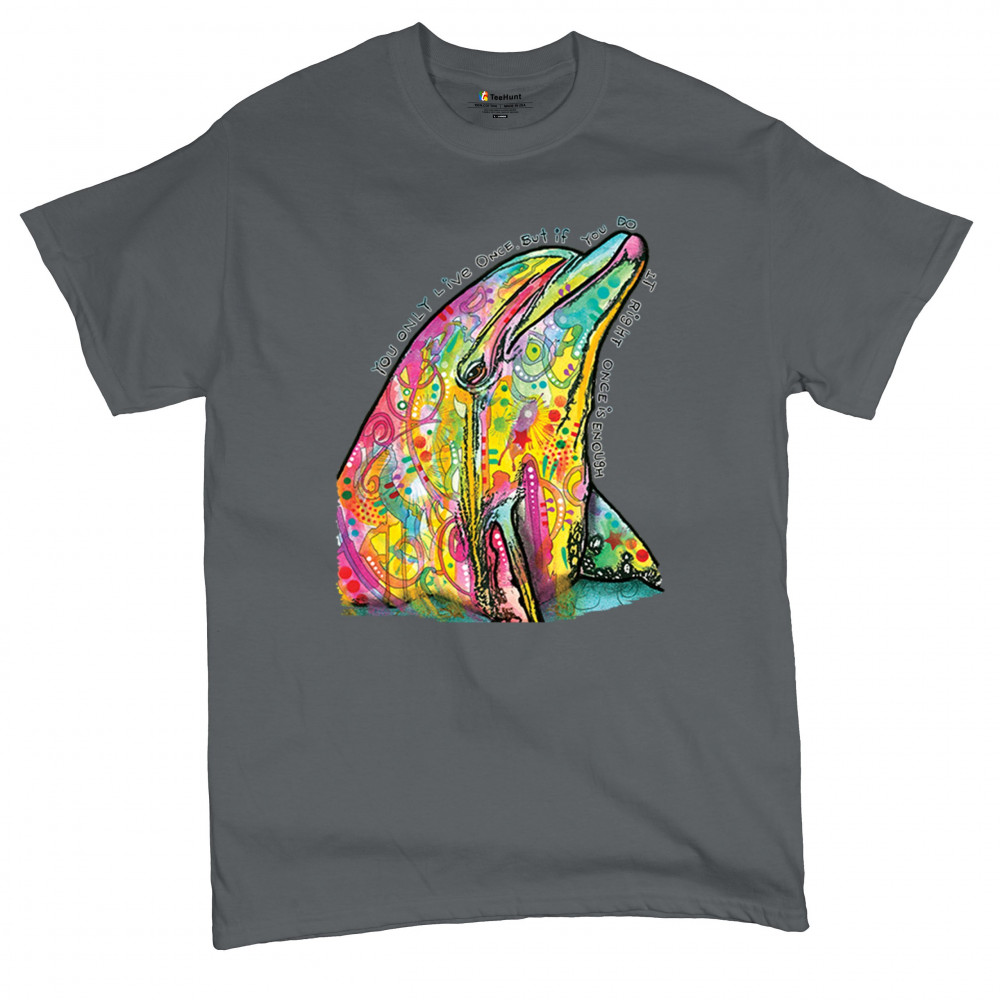 YOU ONLY LIVE ONCE t-shirt cute neon dolphin dean russo yolo men's tee charcoal