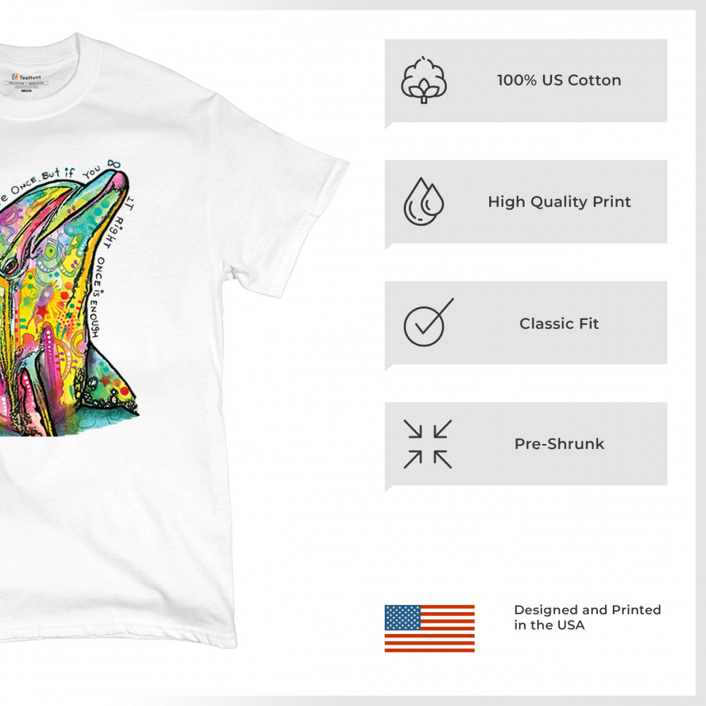 YOU ONLY LIVE ONCE t-shirt cute neon dolphin dean russo yolo men's tee white