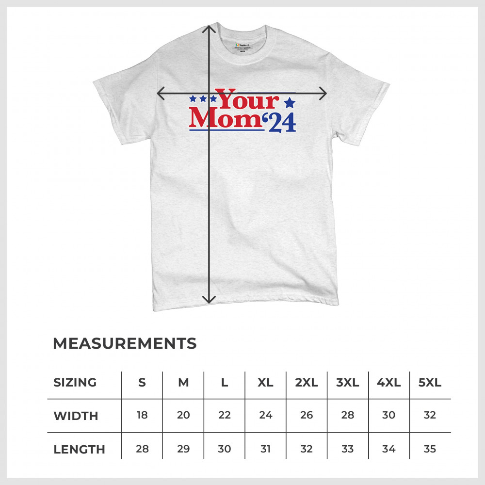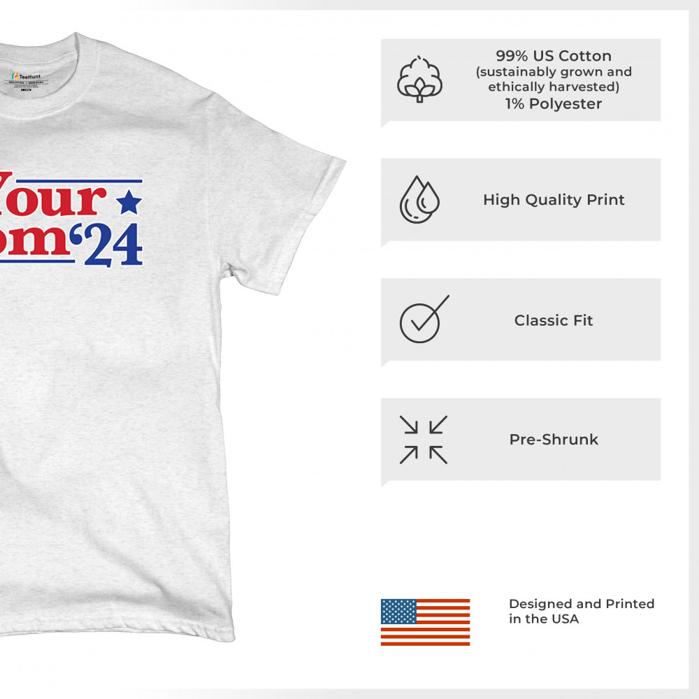 Show off your humor and style with the "Your Mom '24" design. Perfect for the 2024 election season, this design combines quality, comfort, and a playful political twist.