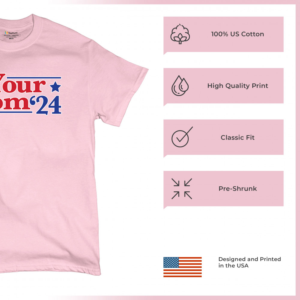 Our "Your Mom '24" design is a playful take on the upcoming election season, perfect for those who love to blend humor with their political views. Made from premium materials, this design offers both comfort and style, making it ideal for any occasion. Whether you're heading to a political event, a casual meetup, or just enjoying a day out, this design is sure to turn heads and spark conversations. Get one for yourself and spread the laughter among friends and family.