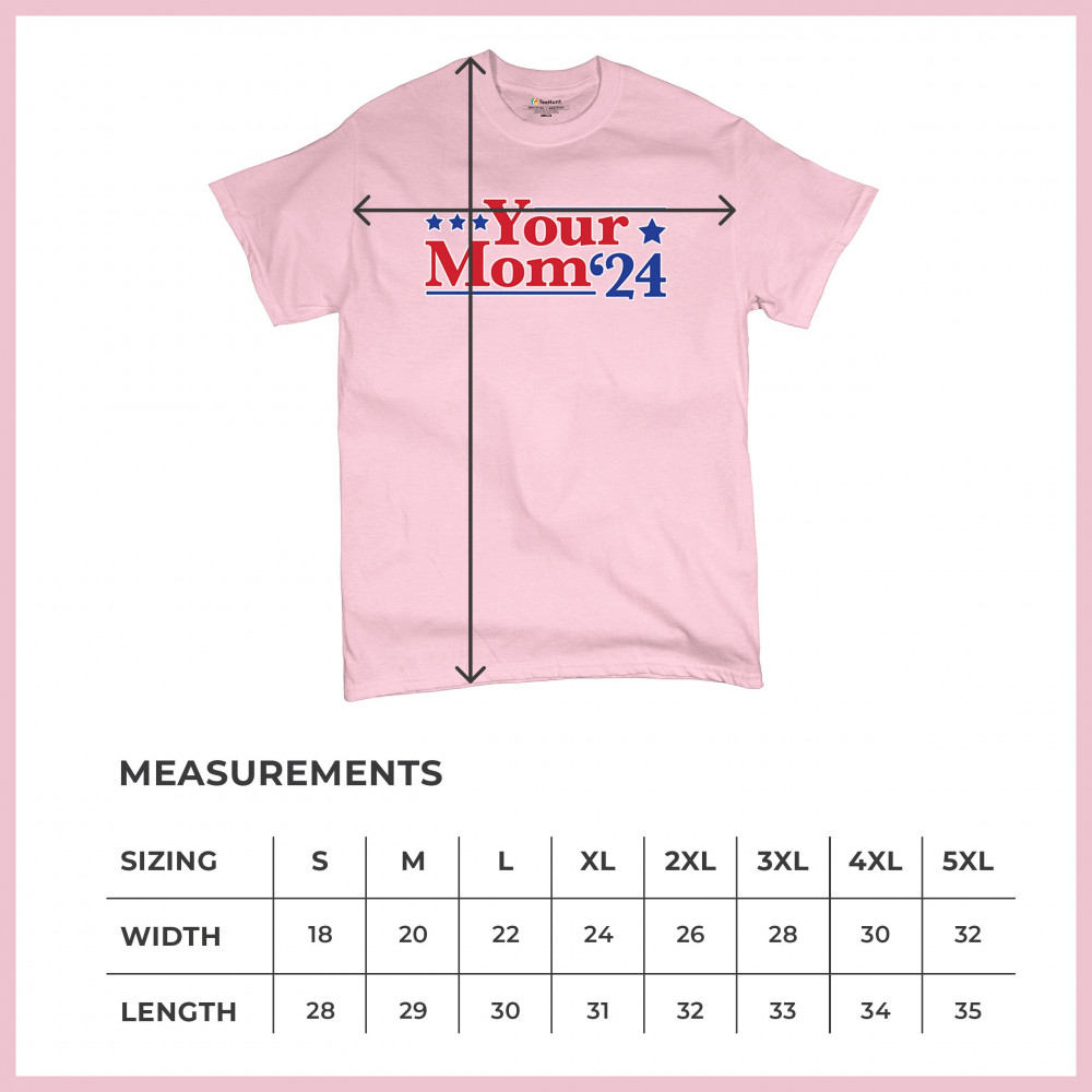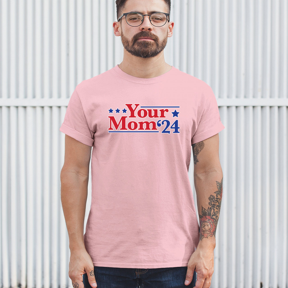 Show off your humor and style with the "Your Mom '24" design. Perfect for the 2024 election season, this design combines quality, comfort, and a playful political twist.