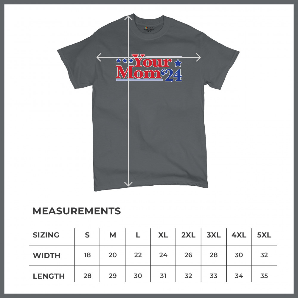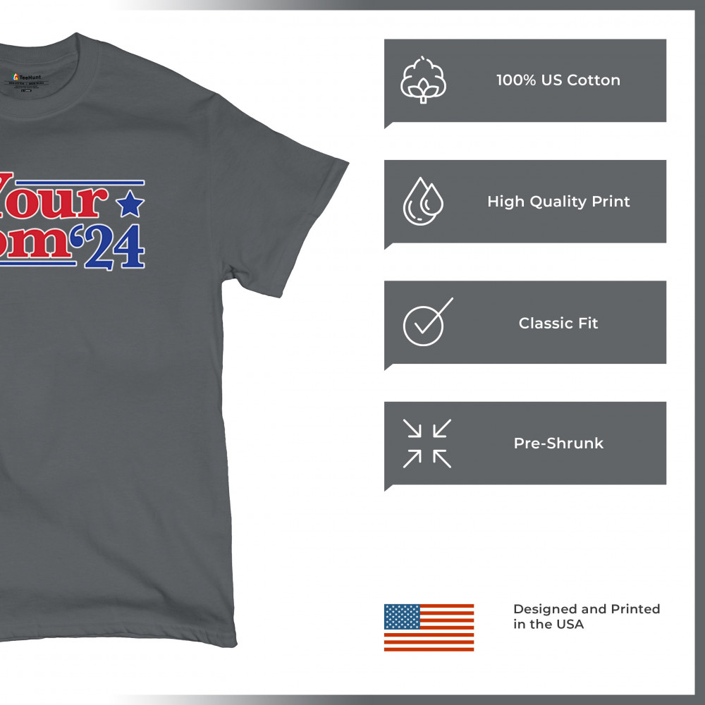 Show off your humor and style with the "Your Mom '24" design. Perfect for the 2024 election season, this design combines quality, comfort, and a playful political twist.