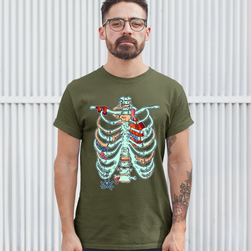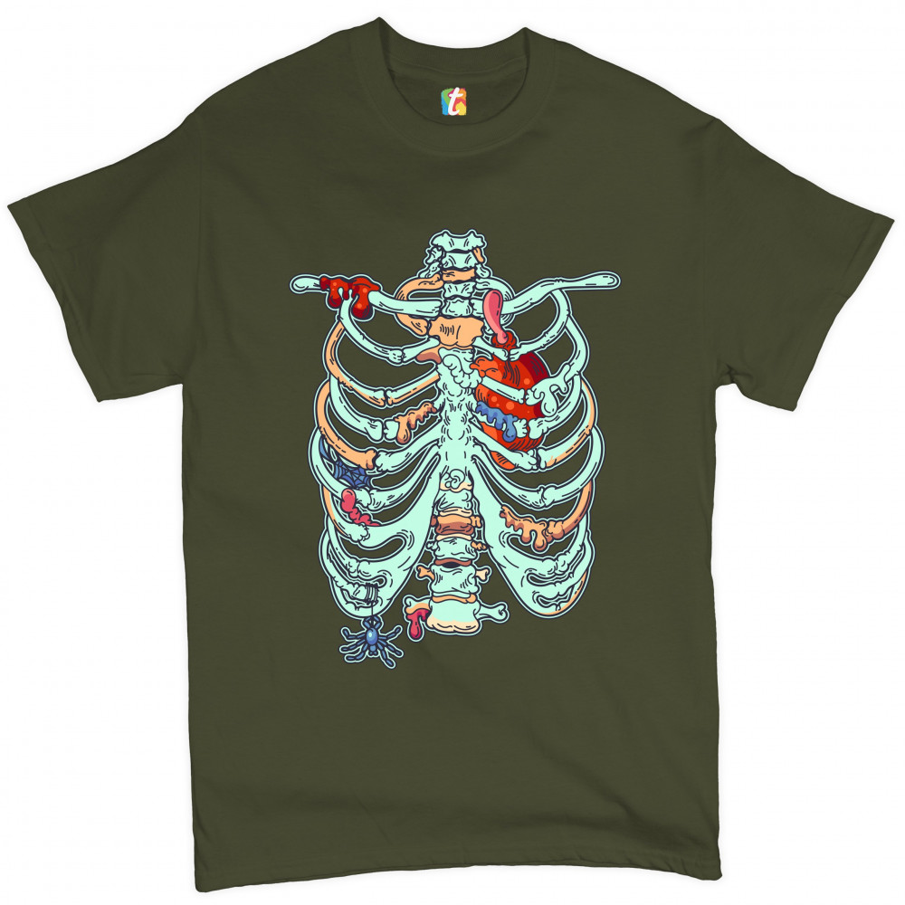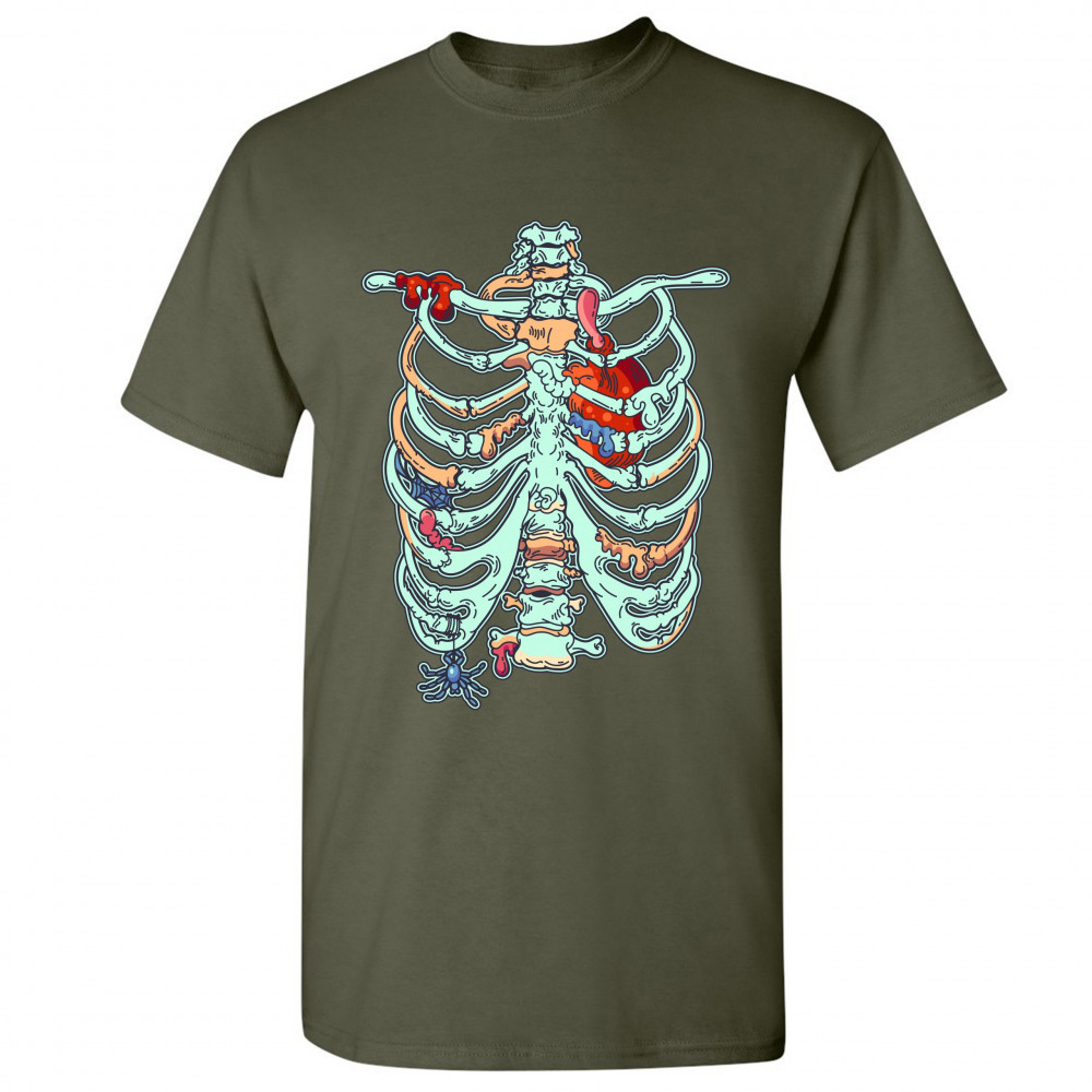 ZOMBIE RIB CAGE t-shirt all hallows' eve spooky halloween skeleton men's tee military green