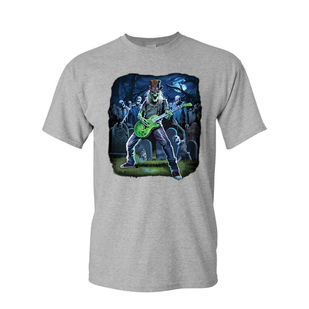 ZOMBIE ROCK t-shirt heavy death metal music skull hard rock mens tee shirt sport gray