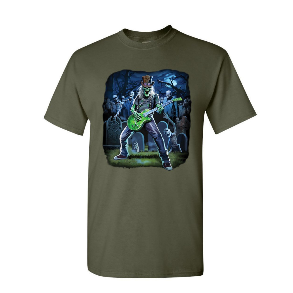 ZOMBIE ROCK t-shirt heavy death metal music skull hard rock mens tee shirt military green
