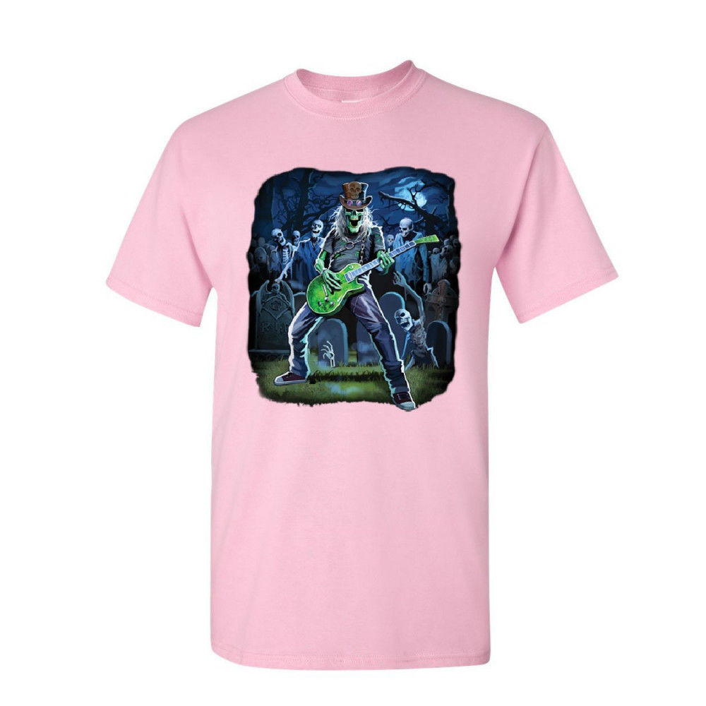 ZOMBIE ROCK t-shirt heavy death metal music skull hard rock mens tee shirt light pink