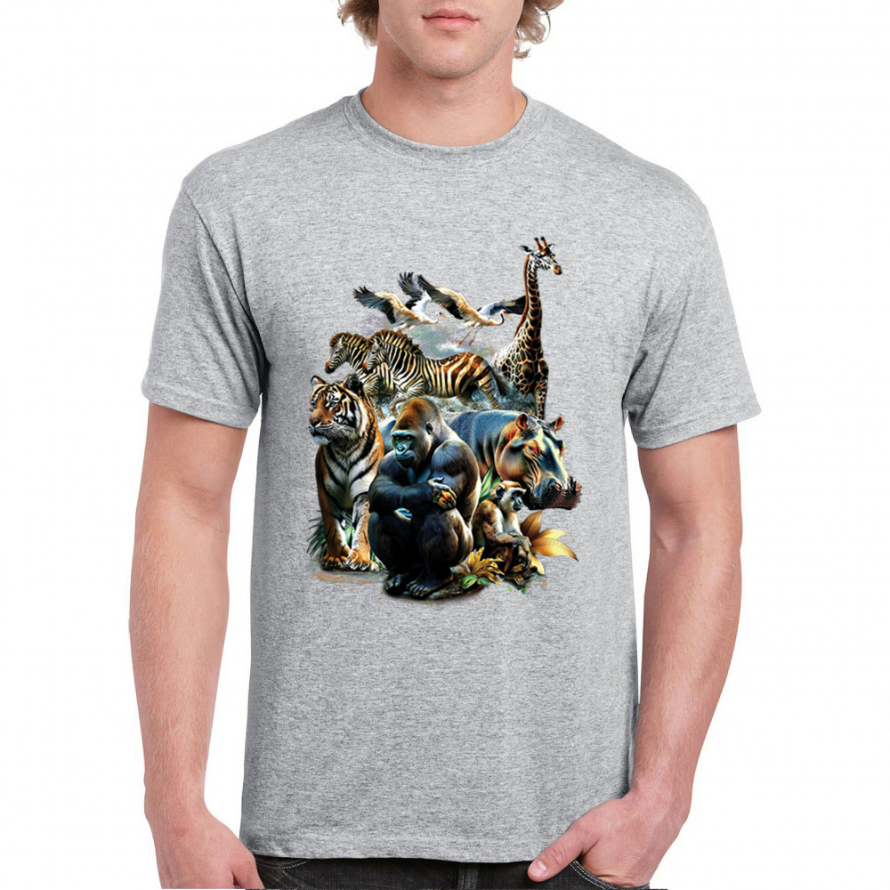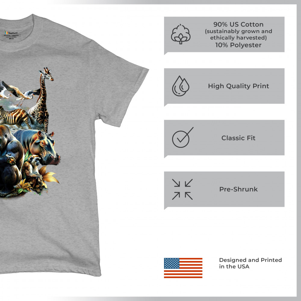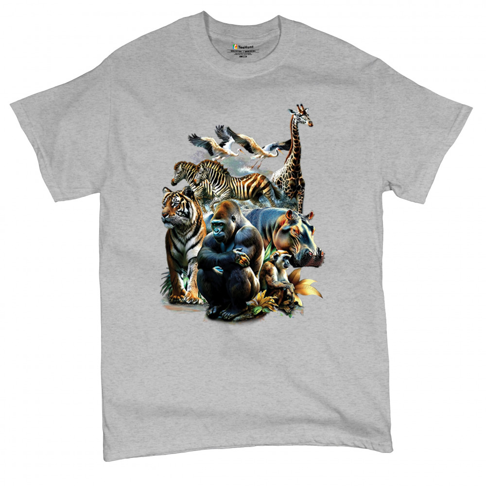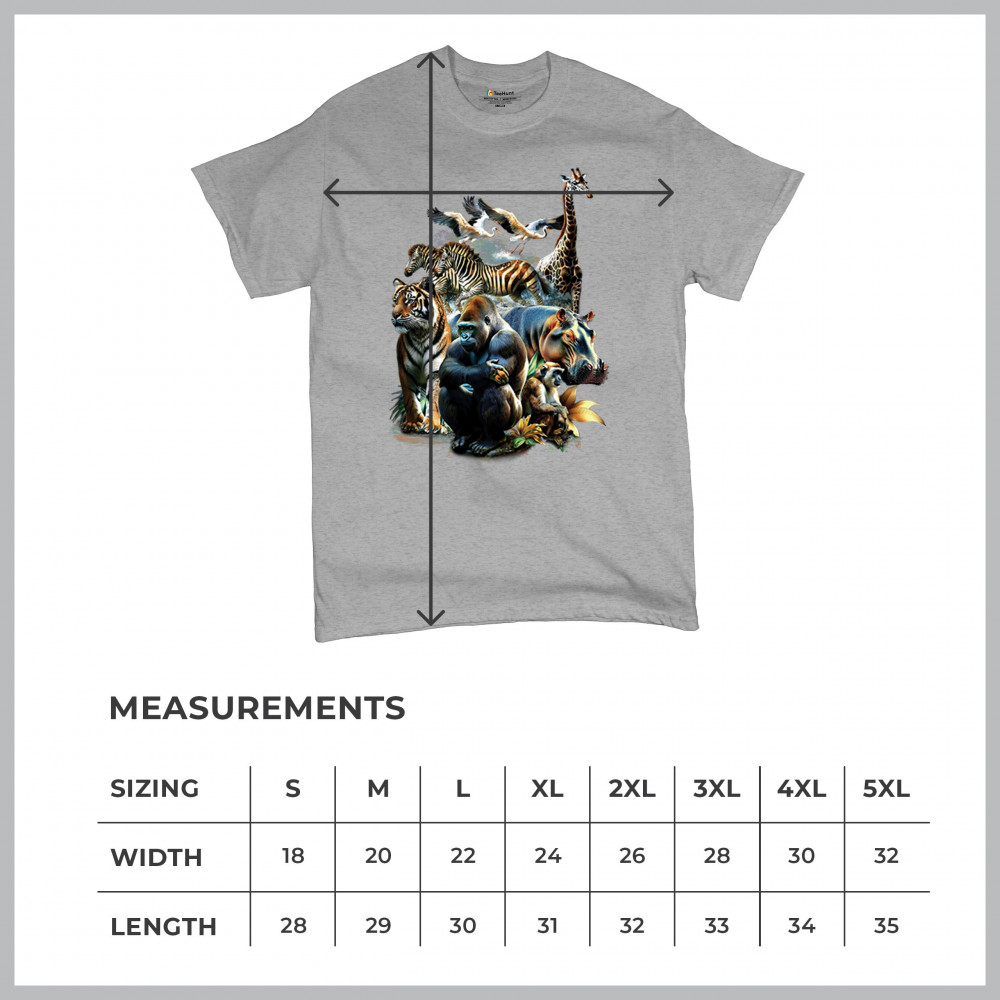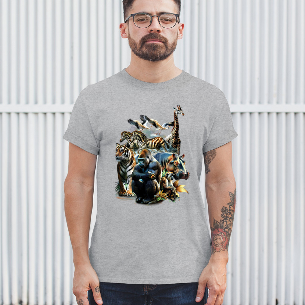 Packed with fierce energy and vibrant color, this wildlife design features a jungle coalition of gorilla, tiger, monkey, zebra, giraffe, hippo, and birds. A powerful tribute to animal beauty, biodiversity, and nature's harmony. Perfect for jungle tour enthusiasts, zoo visitors, or anyone passionate about wild conservation and stunning creature art.